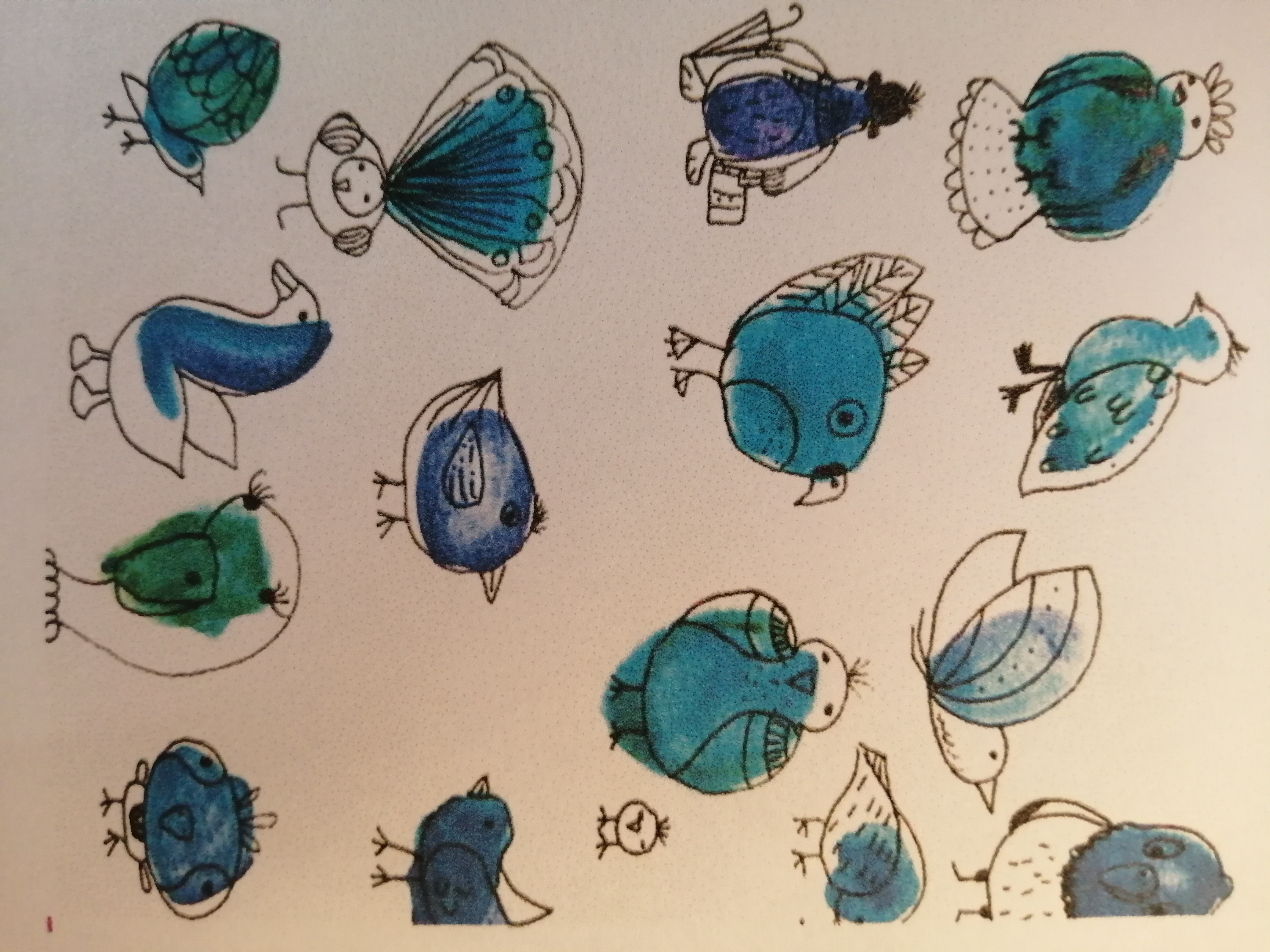 There is nothing better on a gloomy January morning than a little splishy sploshy colour and some scribbling paintbrush and pen adventures.. The pictures below come from resources I keep, or from Pinterest, or from old sketchbooks. Thankyou internet for showing us all these lovely things. Nobody in our groups will copy anything and you have spread a little happiness today .