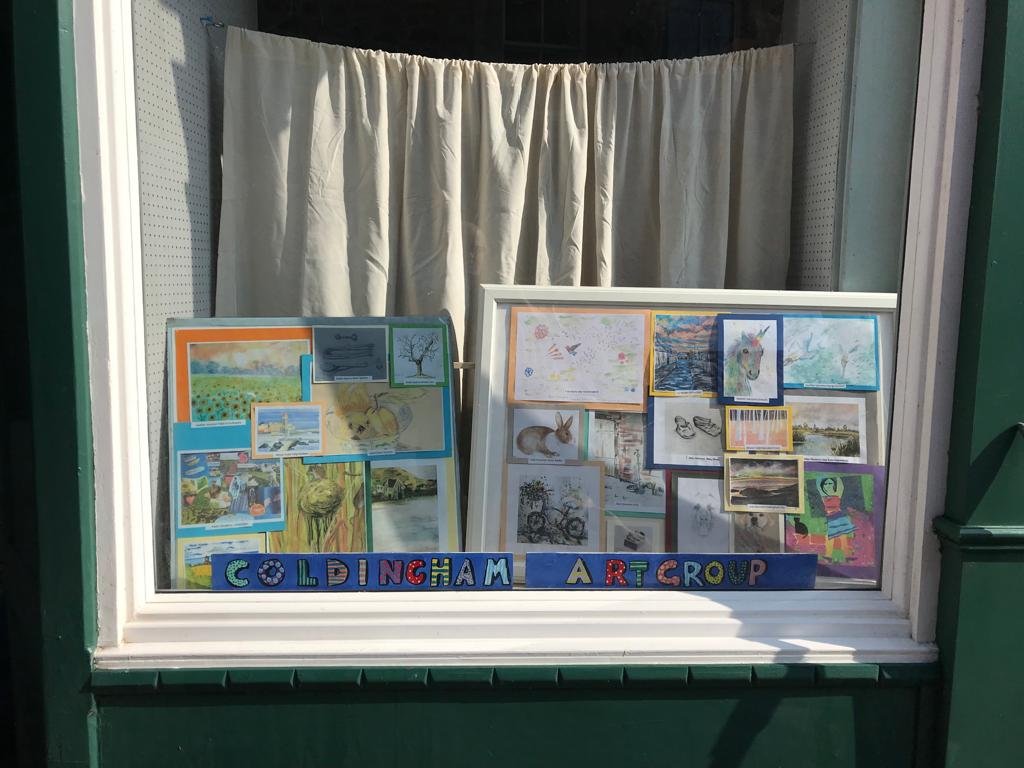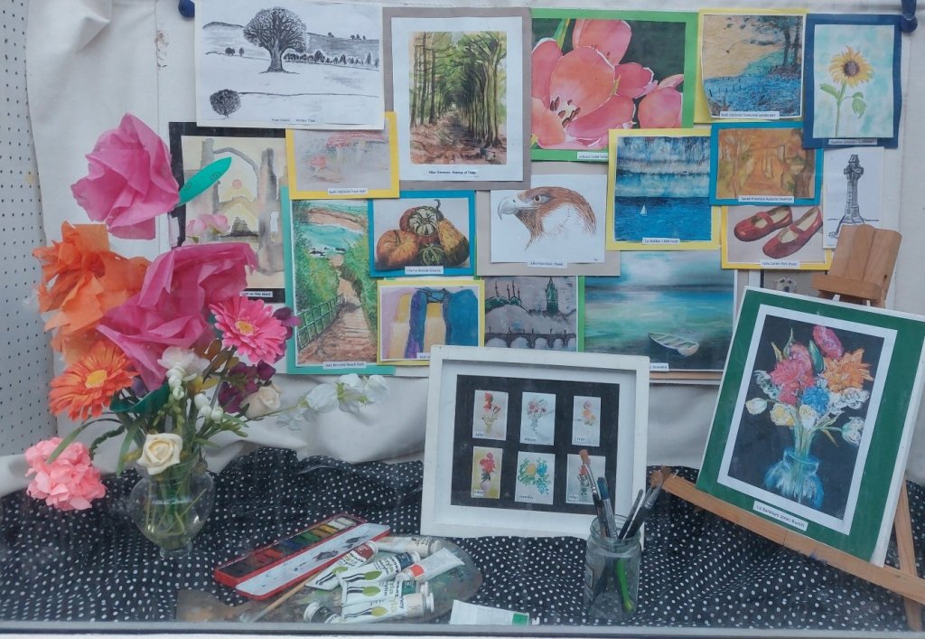 This is the display of our Art group’s hard work over the course of this year in a shop window in Coldingham. We have been fortunate to be able to use this space to show the range of skills and ideas of our fabulous group.