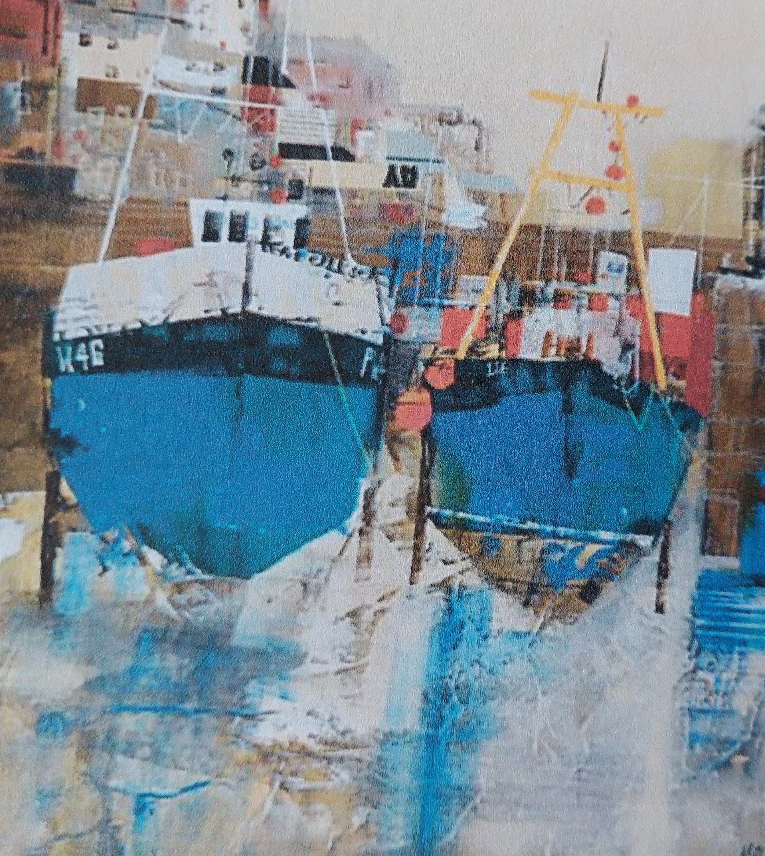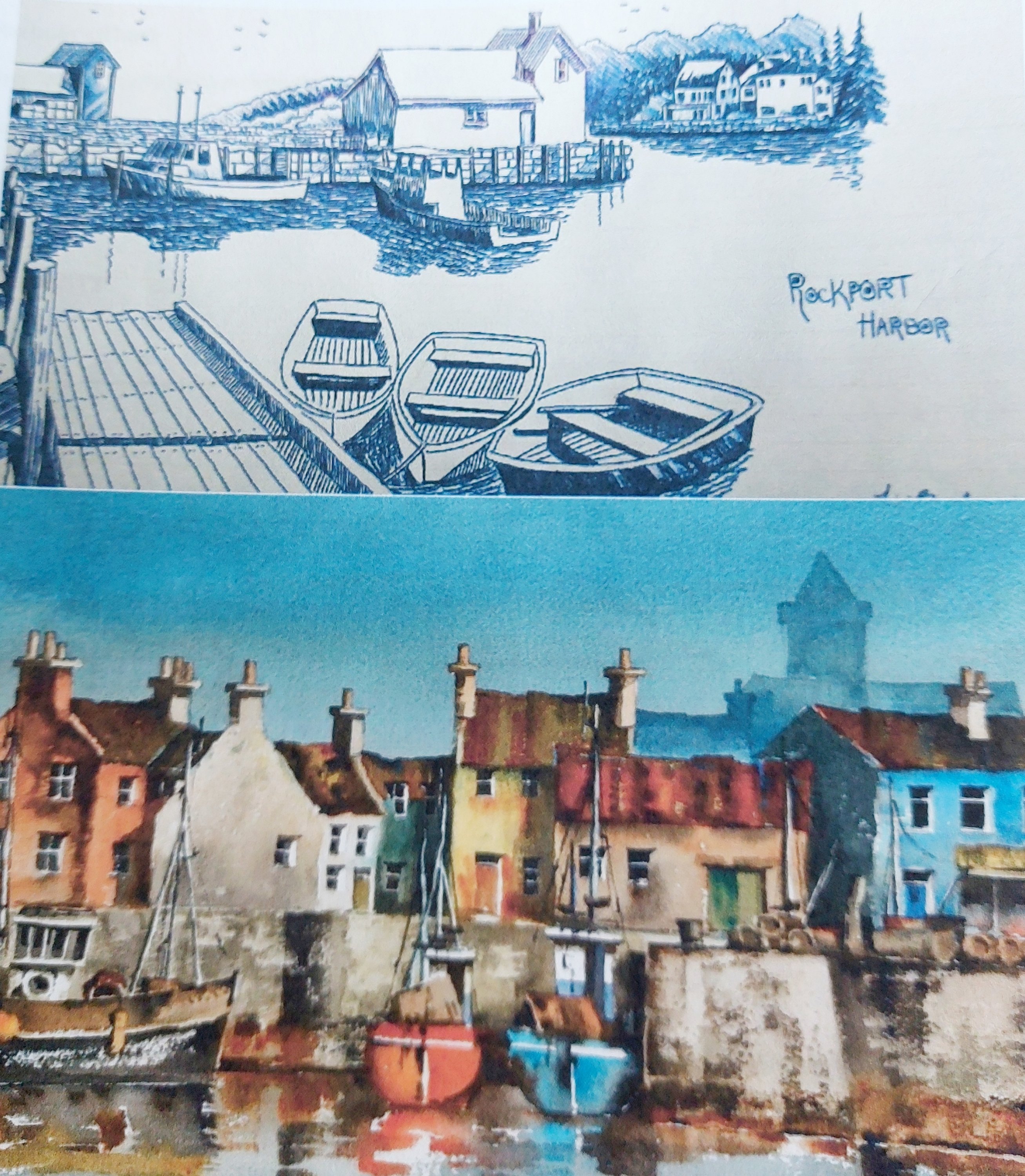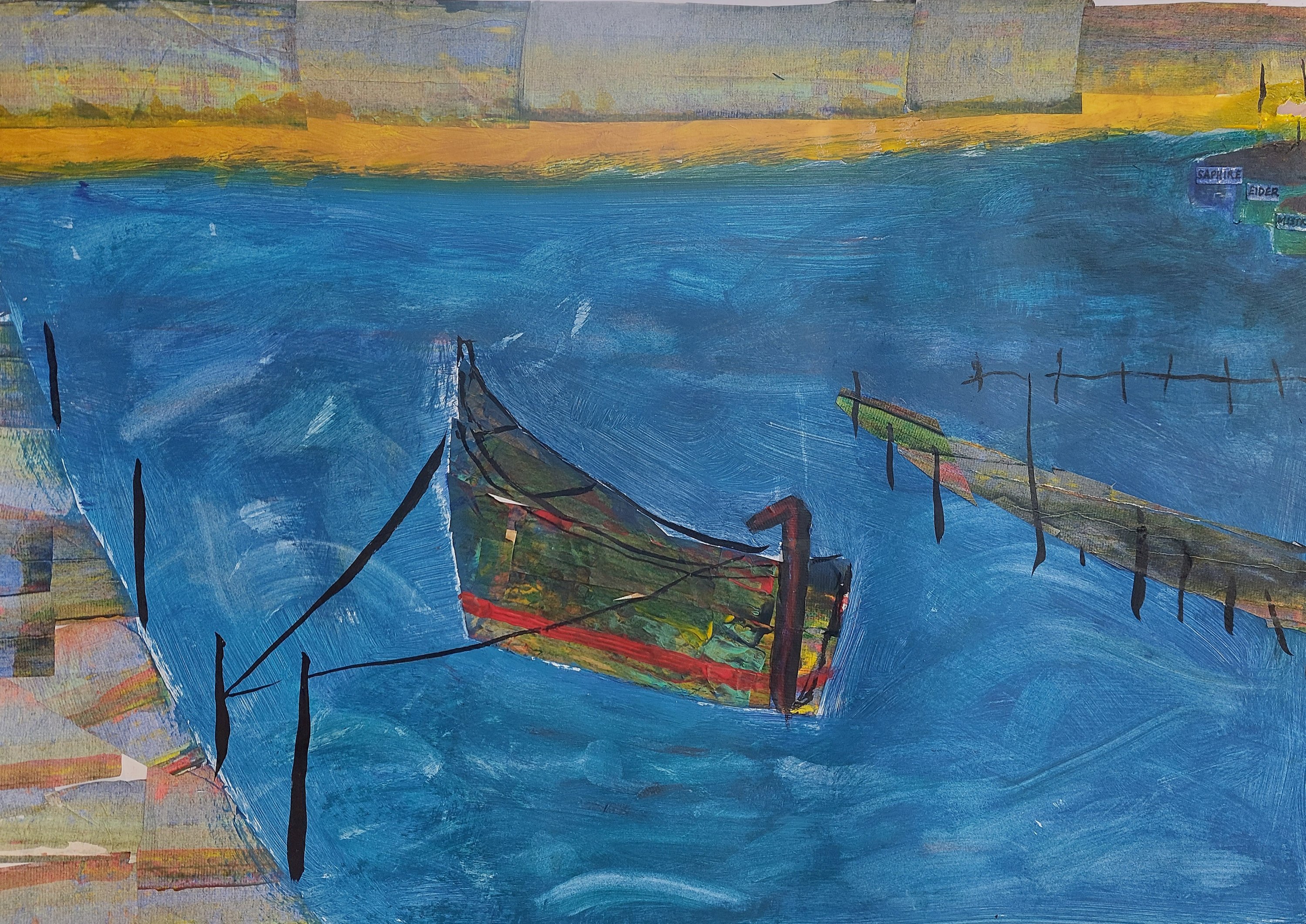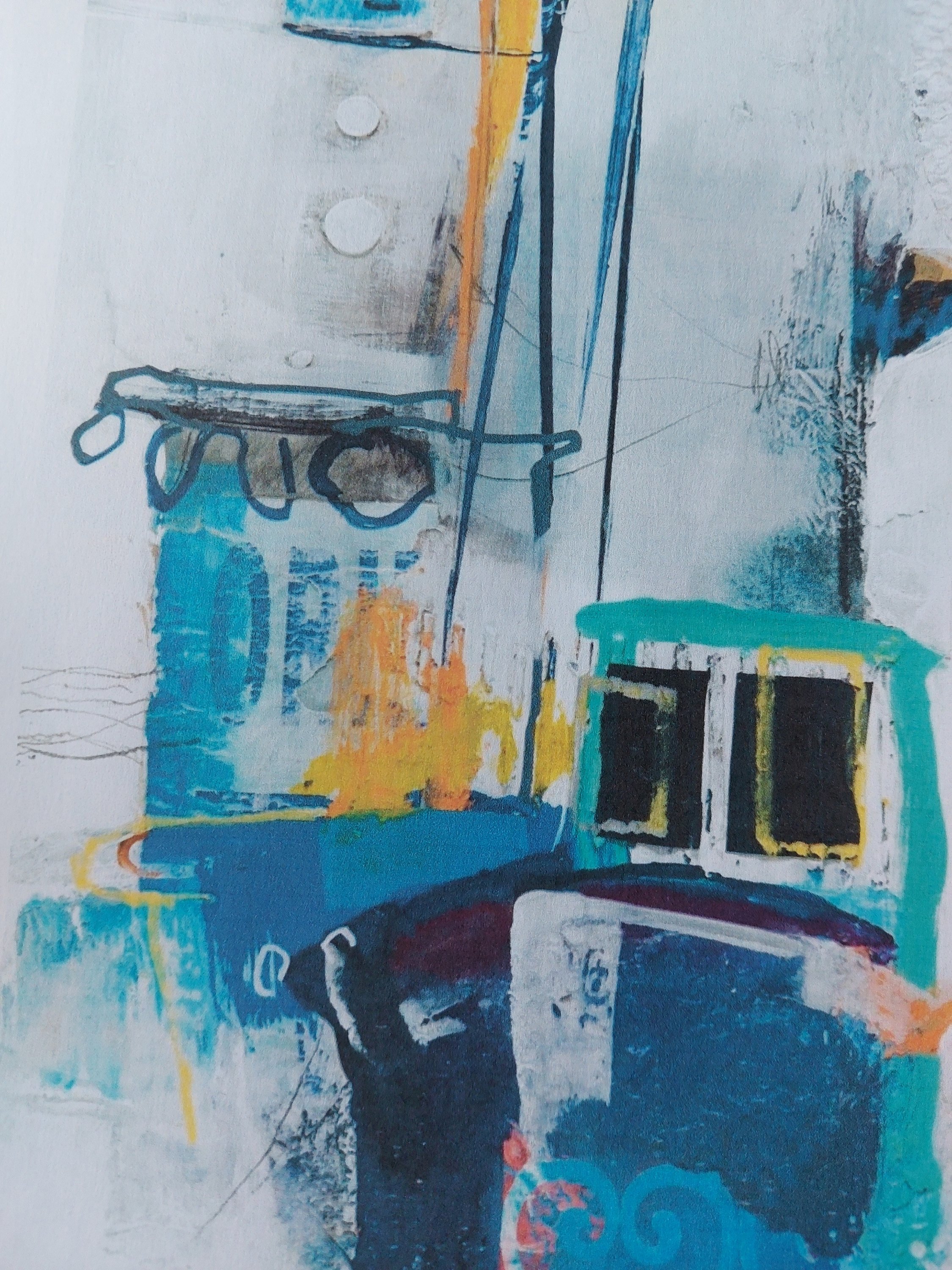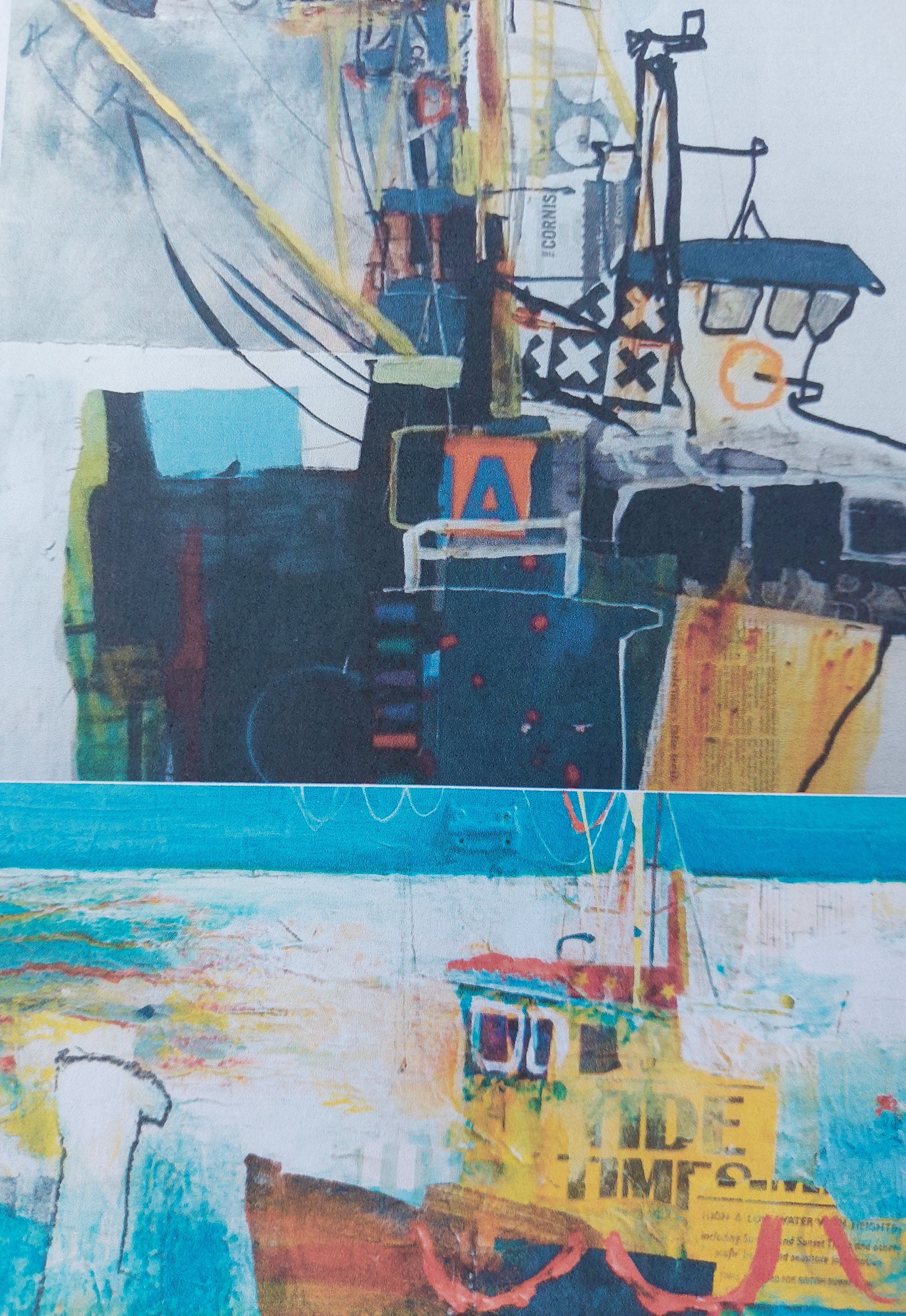 Using harbour photos, thinking about Stamper techniques, simplifying shapes and composition.