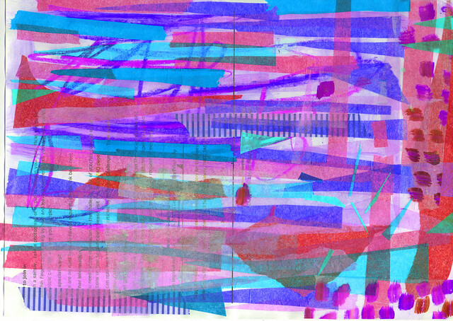 Tissue paper joints. Some papers are harder to glue together than others, tissue is a great way to create joints in a collage. (Use watered down pva)