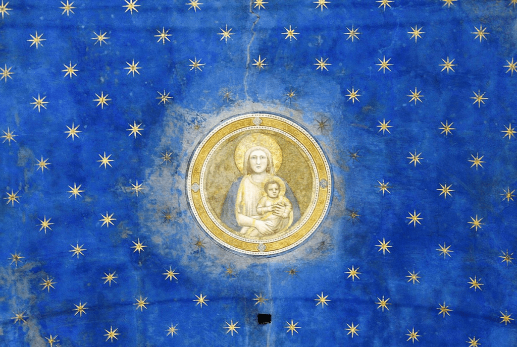 Ultramarine was precious not just because it was a rare import, but because it was extremely laborious to make. Lapis lazuli is veined with the most gorgeous deep blue, but grinding it is typically disappointing: it turns greyish because of the impurities in the mineral. These impurities have to be separated from the blue material, which is done by kneading the powdered mineral with wax and washing the wax in water — the blue pigment flushes out into the water. This has to be done again and again to purify the pigment fully. The finest grades of ultramarine come out first, and the final flushes give only a low-quality, cheaper product, called ultramarine ash. The best ultramarine cost more than its weight in gold in the Middle Ages, and so it was usually used sparingly. To paint so extensively with the colour, as Giotto did in the Arena Chapel, was lavish in the extreme.