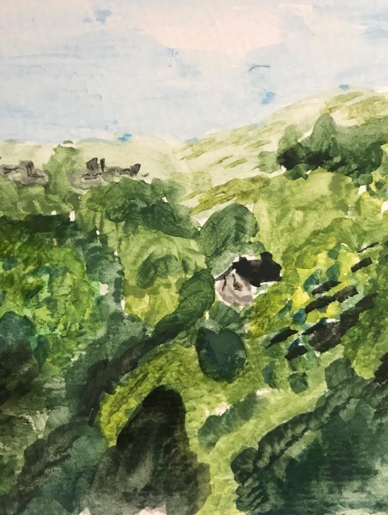 Watercolor works well when you apply a minimum of brushstrokes and not too many layers of paint. Try not to overwork watercolours, If you mix too many pigments you can end up with murky looking colors. Watercolor is a transparent medium and works well with a minimum of fuss.