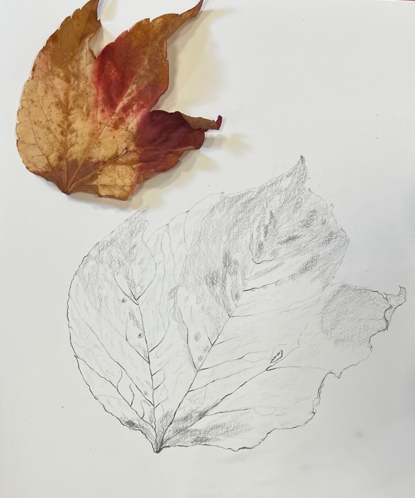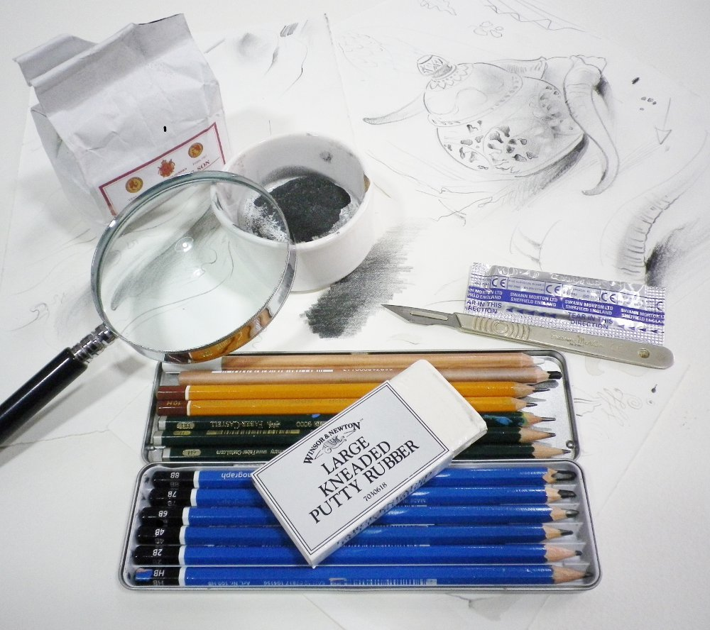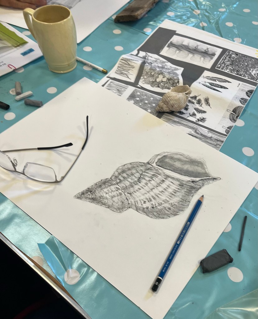 Beginning with markmaking and warm up exercises using pencils, charcoals and chalks