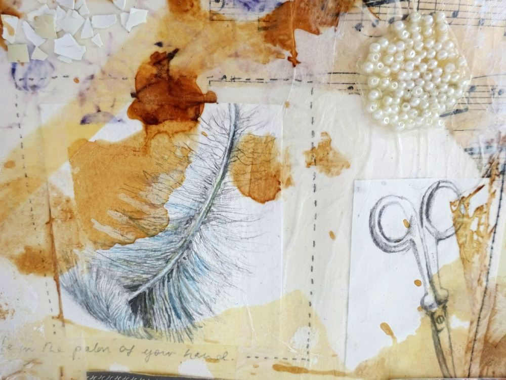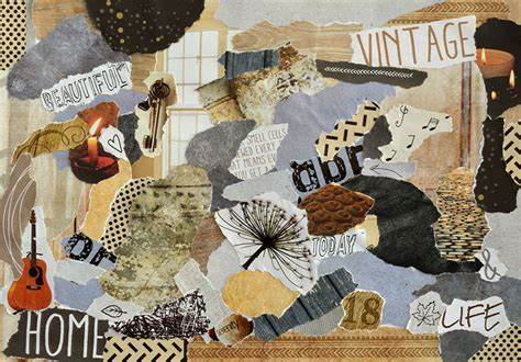 - Consider adding textural elements to your collage, like fabric, ribbon, or natural resources, leaves, feathers etc.