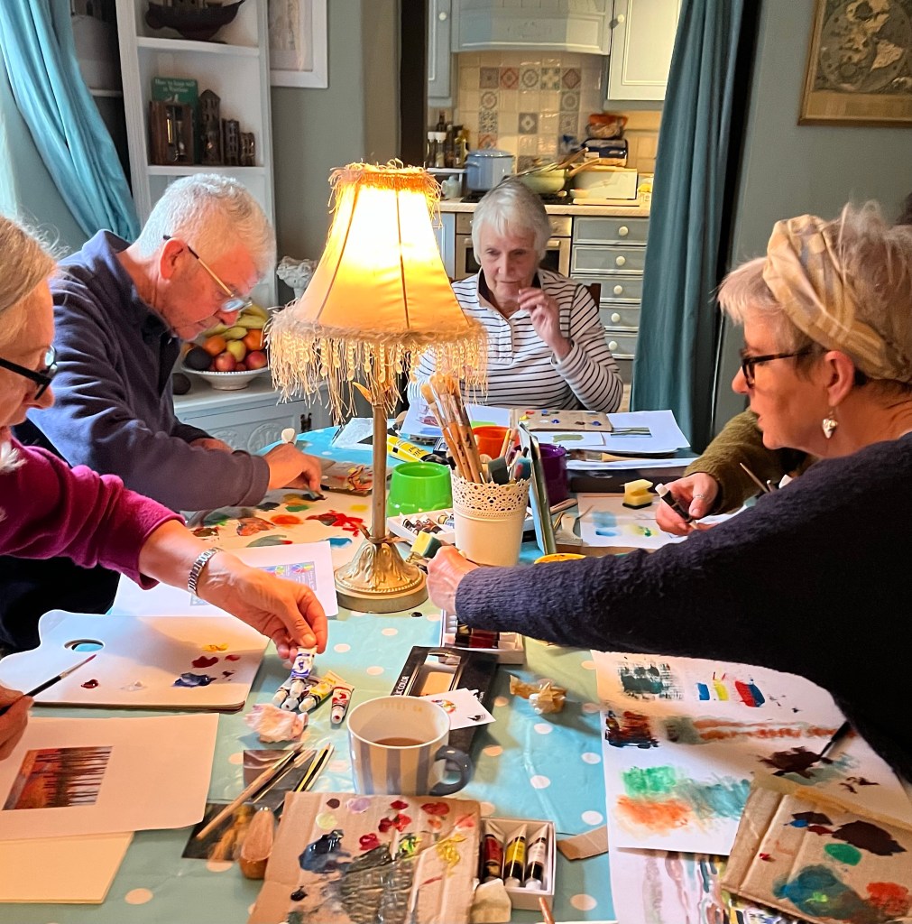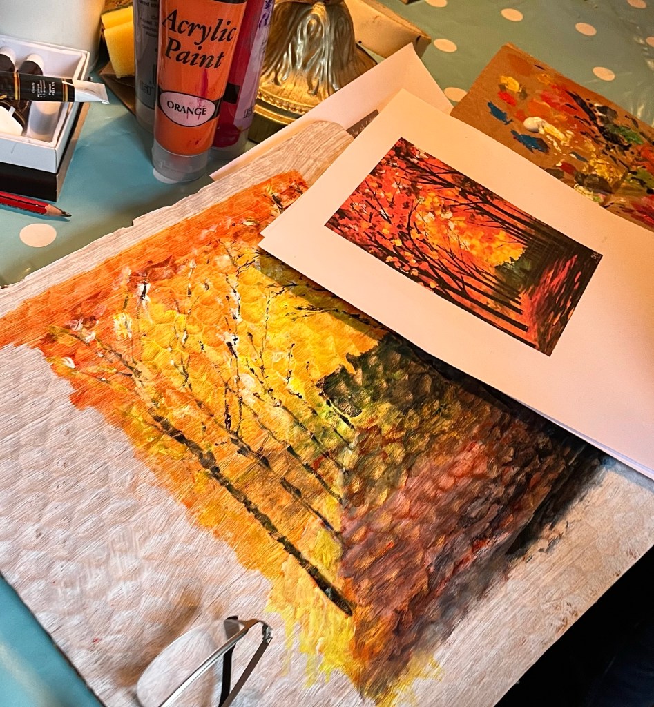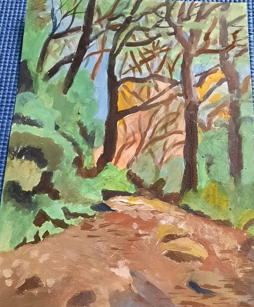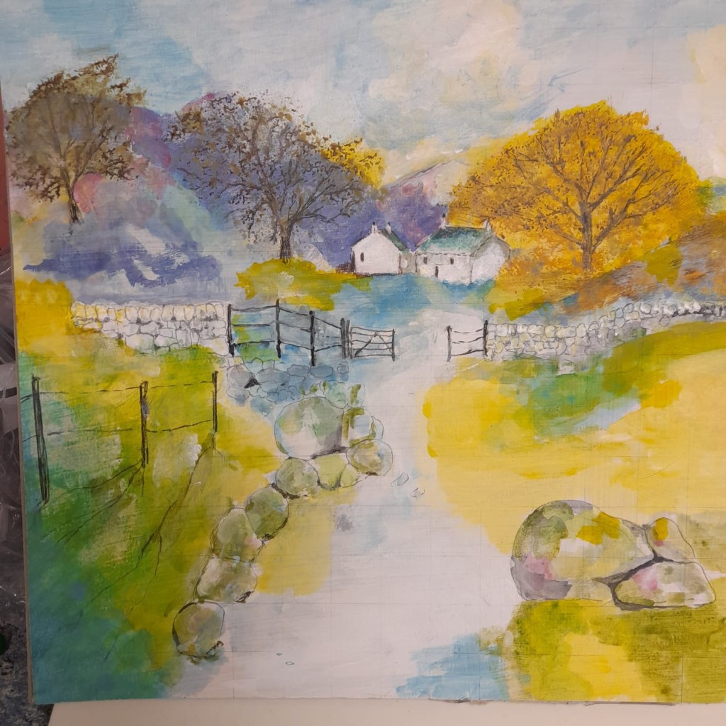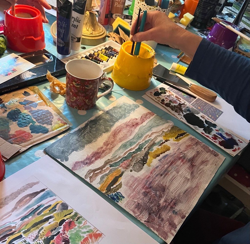 Acrylic landscapes this week , experimenting with different media applications and colour mixing.