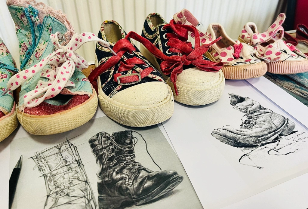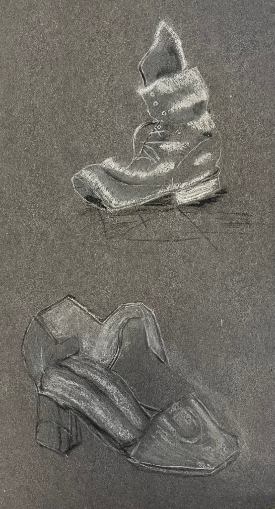 The symbology of the shoe in our cultural heritage, is richly woven throughout our childhoods and adolescence as we lose ourselves in fairy tales and books, traveller’s tales and ballet stories, our feet carving paths into the world we are making, associating with, and being inspired by archetypal characters along the way. Every shoe tells it’s story and holds it’s memories, still as sunset in creases of leather and silk.