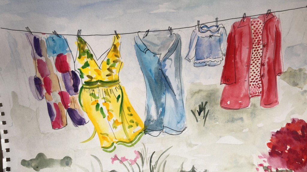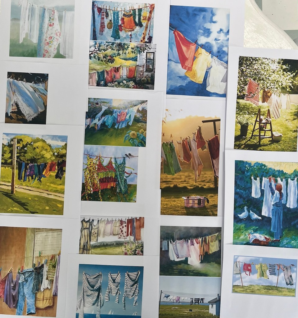 Throughout history, in gardens and at firesides, over baths, and on balconies; hanging laundry on a clothesline was far more than just draping clothes over a rope. It was a careful and deliberate process, an art form of sorts. The task required a keen eye for space, balance, and precision. Each garment having it’s place on the line, strategically positioned to catch the most sun and breeze, in a perfect drying spot. The charming appeal of wind dancing fabrics, juxtapositions of texture and scale, harmonious colour and the lovely blend of multi-generational garments is not lost on artists working within a variety of styles and times.
