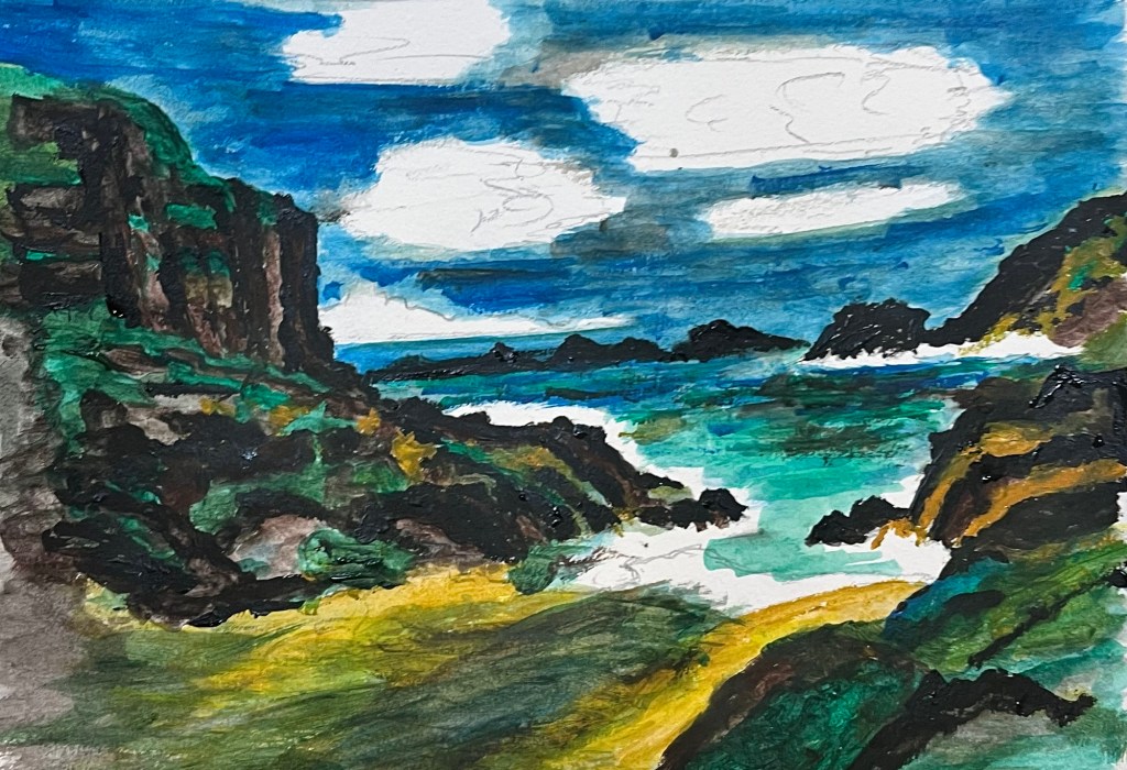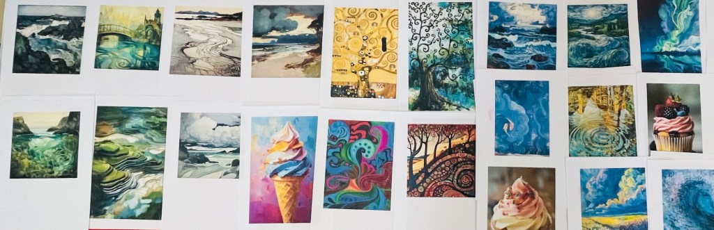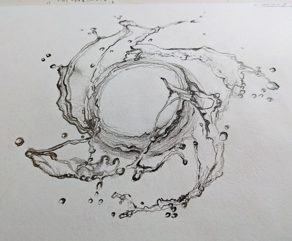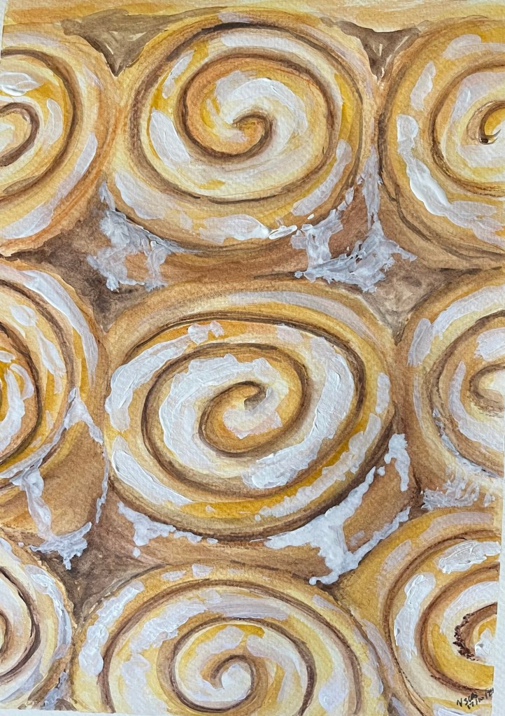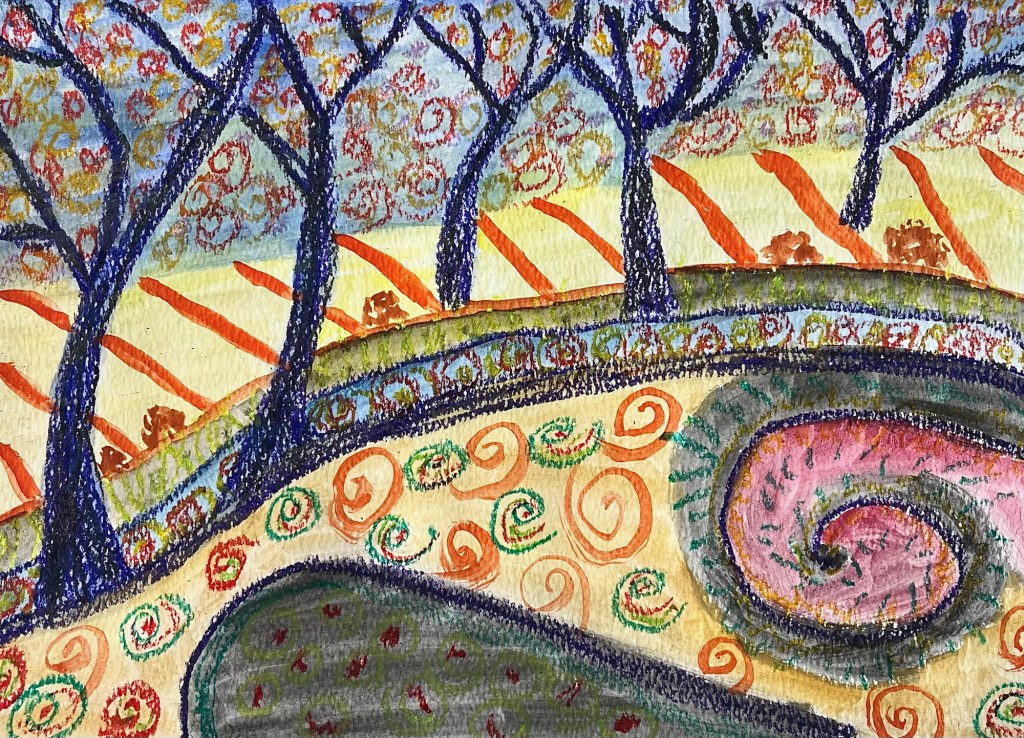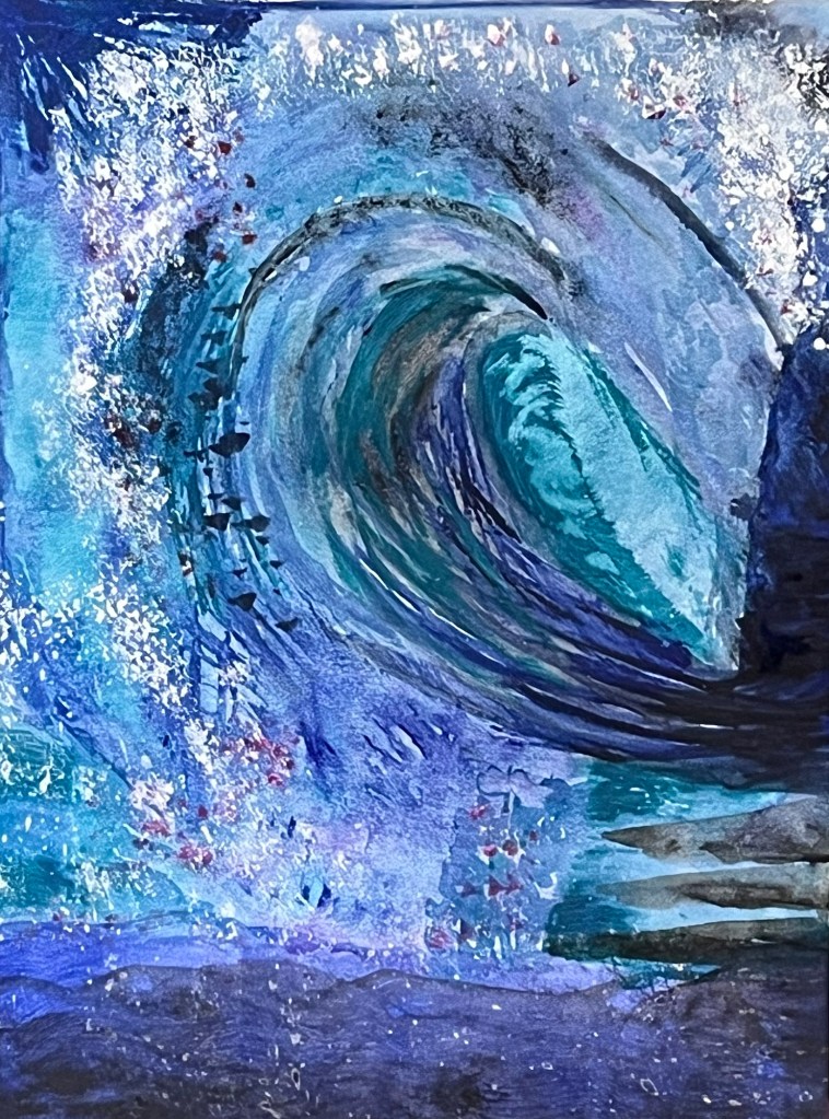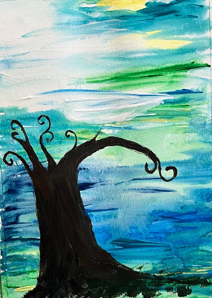 The way we paint, whether it is the depth of the paint itself (thick paint is called impasto) and the application of the media, how it blends with other things and how we feel when we create, all have a huge impact on our work. Listening to the right music, feeling content in the space, having the right materials to hand when you need them, sets up the process and makes it far more enjoyable. And how we make marks- short and stubby, scratchy, long and flat, layered and sketchy, or long, flowing lines, tell the story of the object we are capturing, they help apply the media, and are an integral part of the therapeutic value of making that piece. Go with the flow and swirl… If it was good enough for Van Gogh..