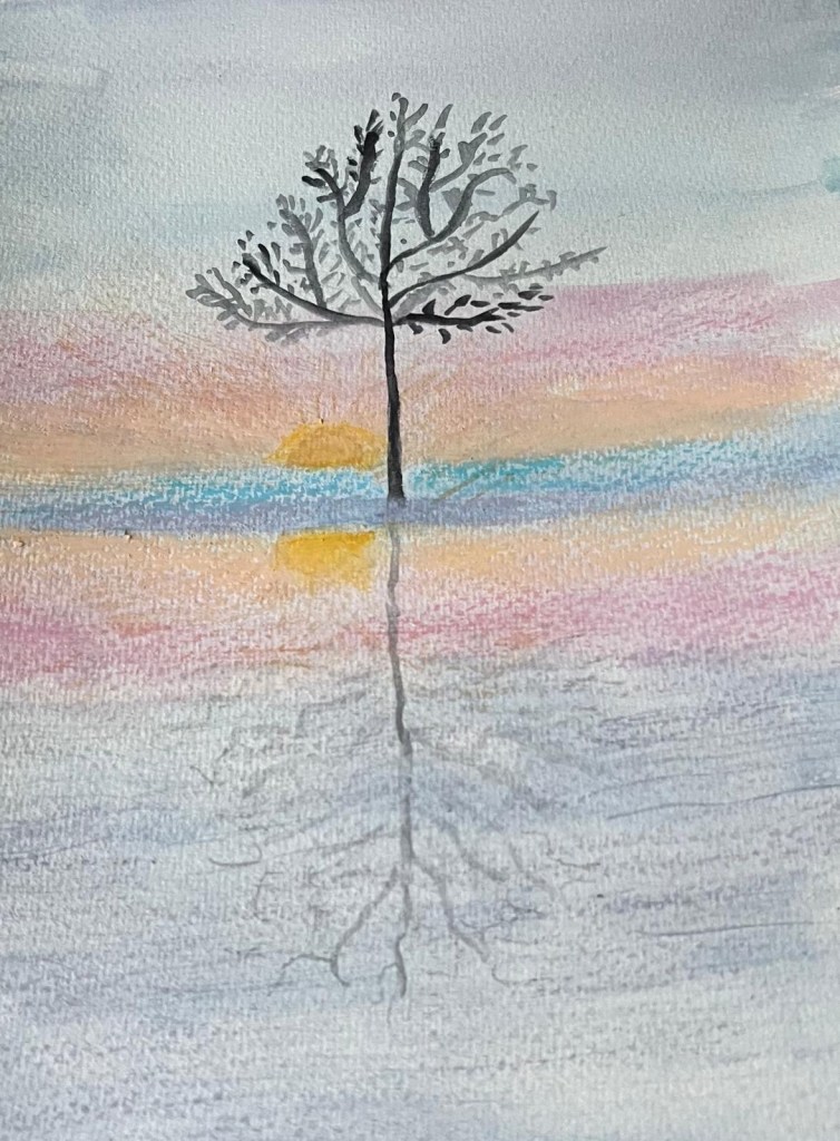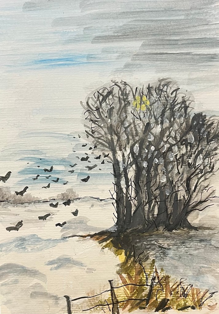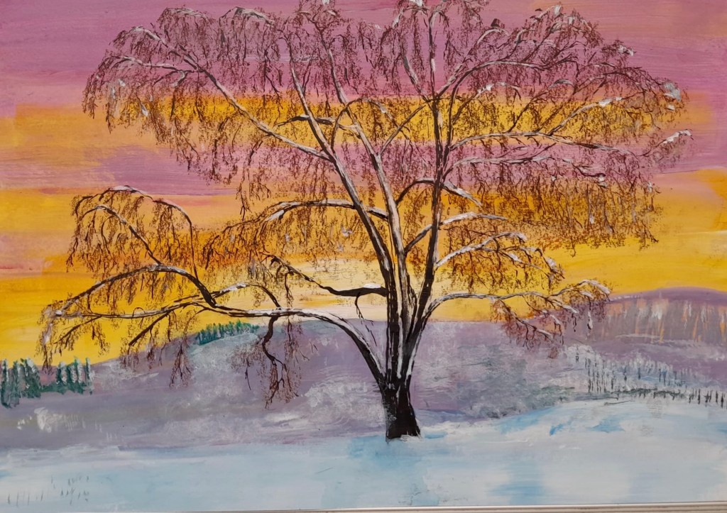 Our theme this week shows us the textures and lines of the changing landscapes, in the simple and archetypal structure of a wintery tree. Celebrating the wonder of nature preparing for rest and later re-awakening. Artists have explored this theme using a huge range of techniques and materials from acrylic and watercolour, charcoal, pen and pastel. Each picture captures an aspect of nature’s winter paintbox and reminds us that it’s beauty is still very much still alive.