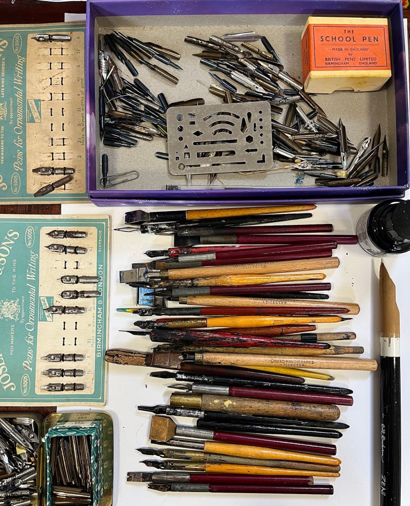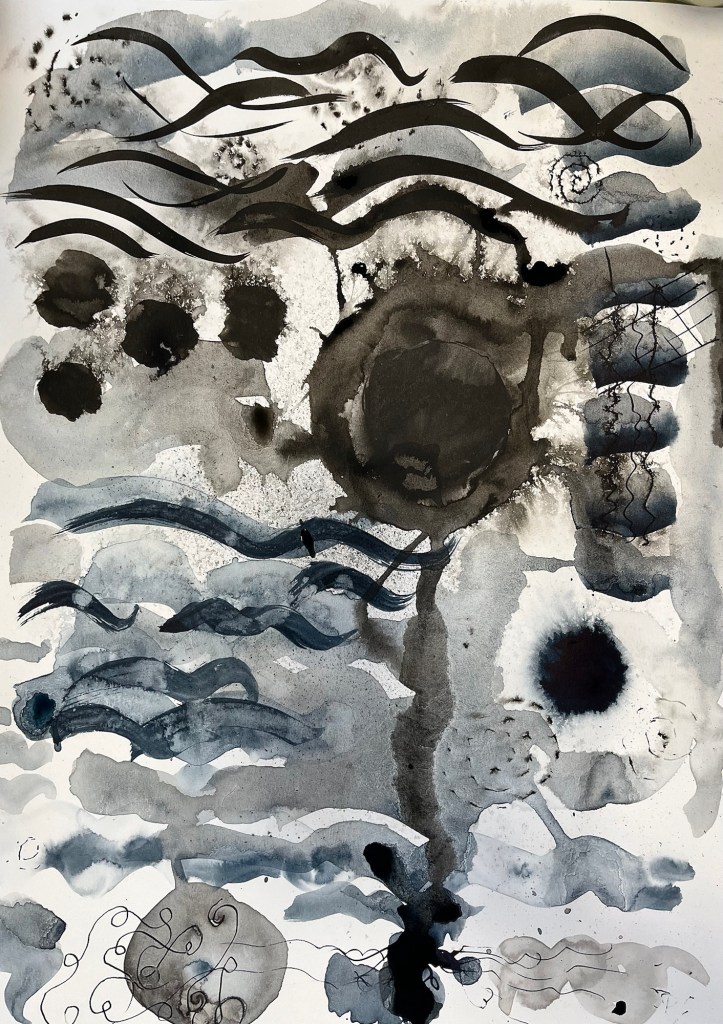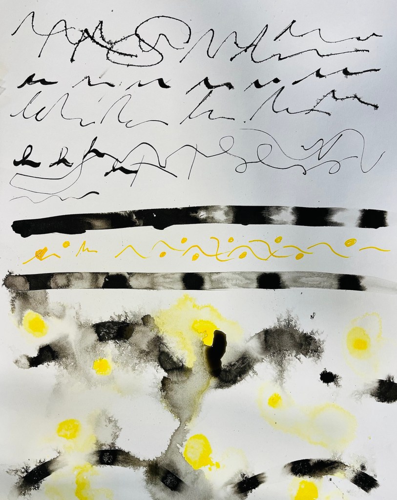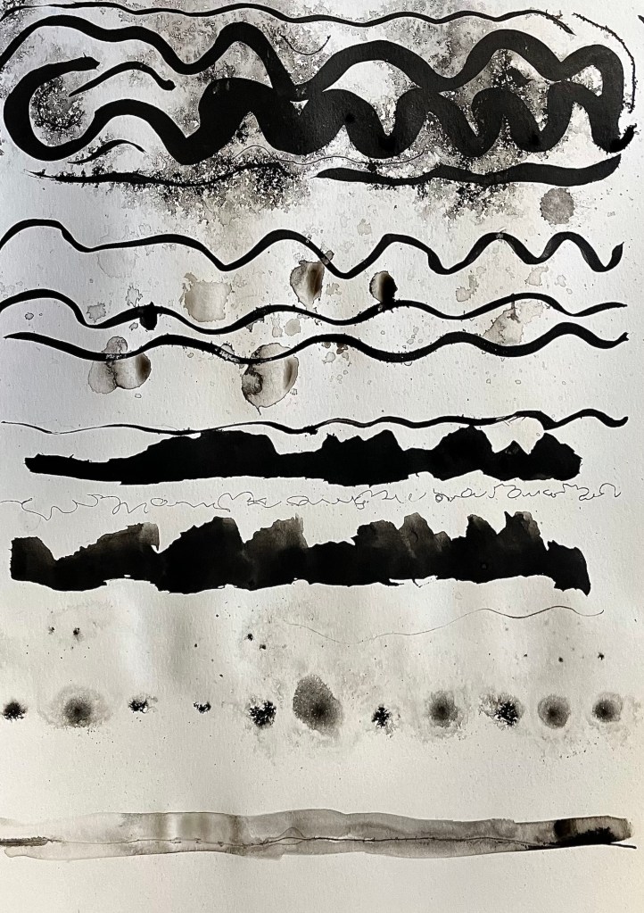 Before we began our painting today, we unearthed a box of old drawing pens and squirty tools, sprays and Chinese brushes, playing with textures and mark-making, loosening the hands and minds and gestures. The results were fabulous and even more so were the looser drawings which followed. Well done on a great morning’s creating!