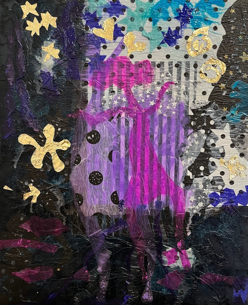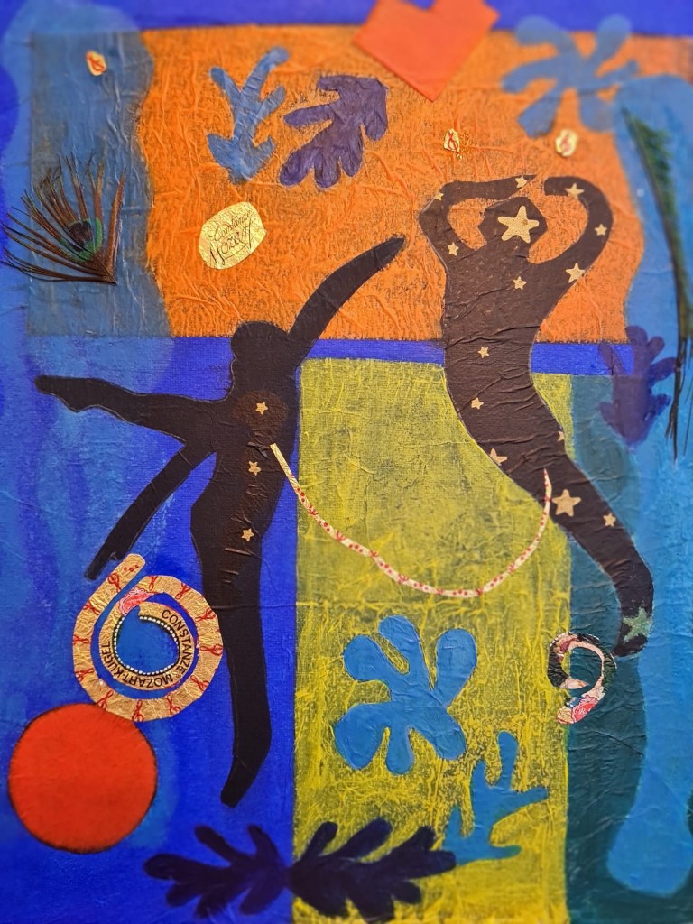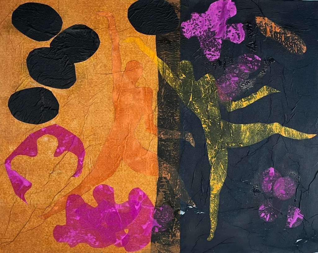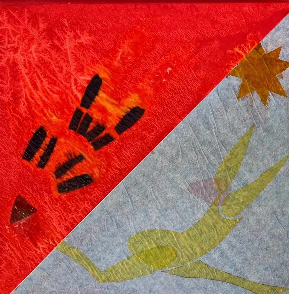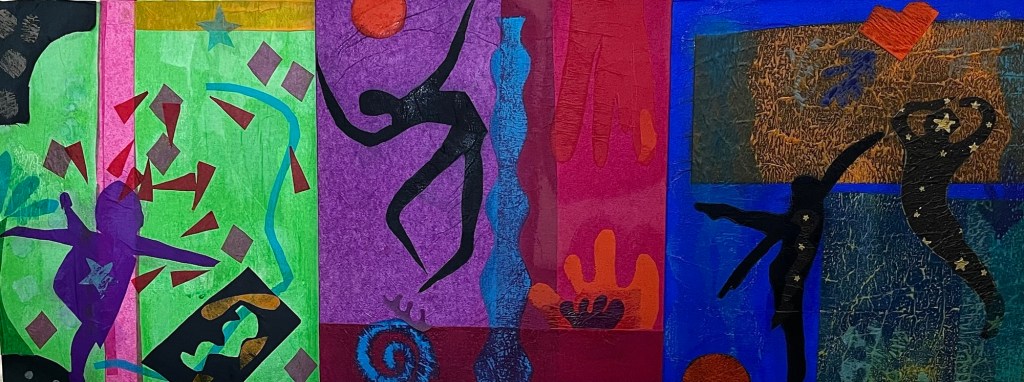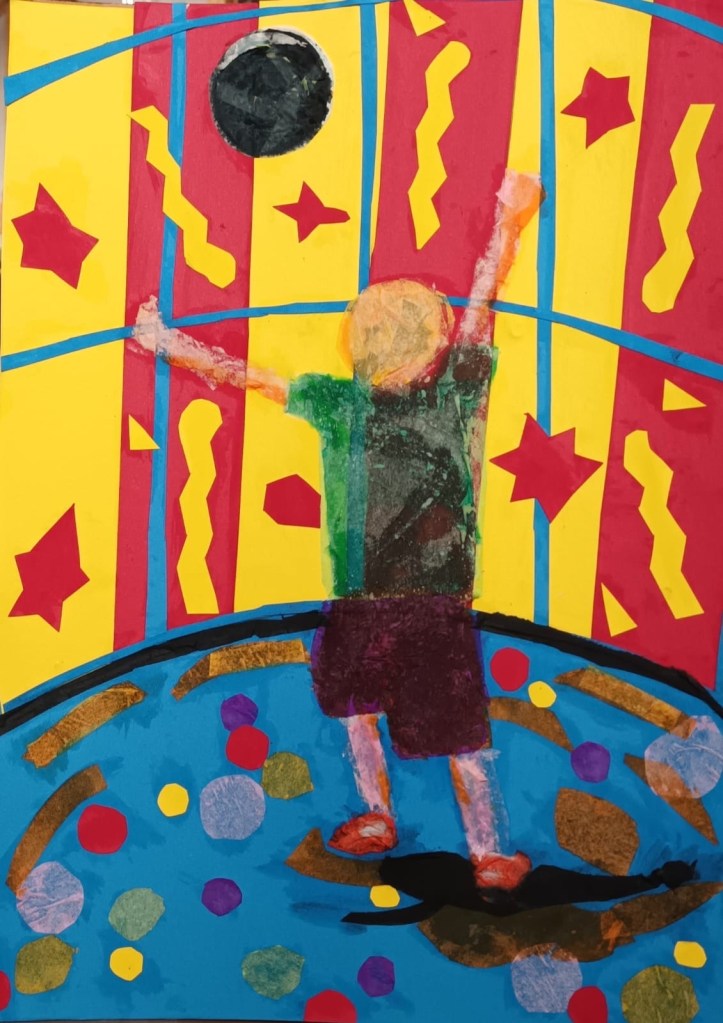 Everyone this week has translated their idea of being inspired by Matisse in a different way. Paul has used digital media, some people have painted in acrylics and watercolour, most have experimented with cut painted papers and tissue paper, building up bright layers of colour with overlay and simple but balanced composition. this technique is very useful for all types of painting and collage work.