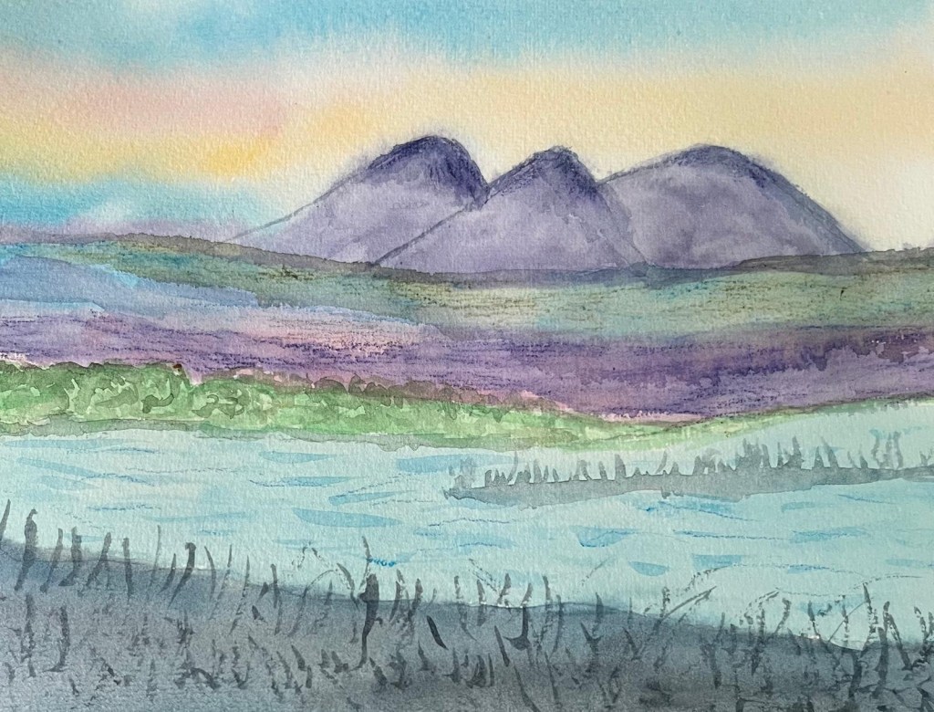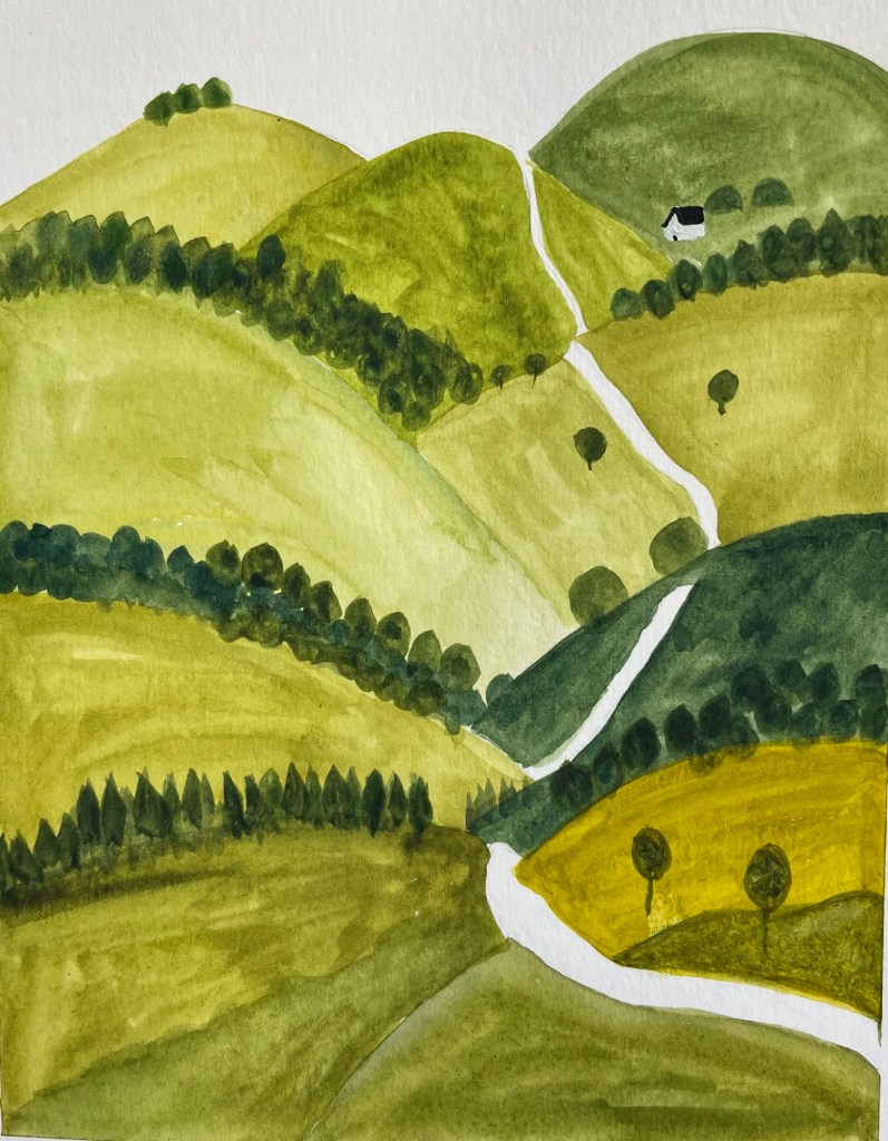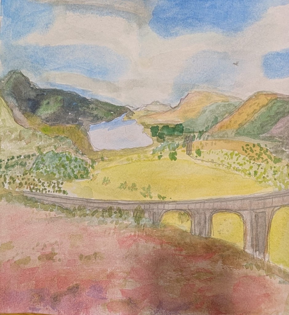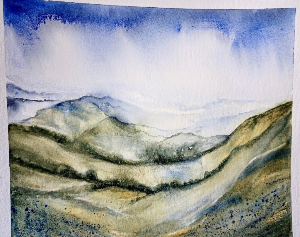 This week our hills are alive with the sound of busy brush strokes, swooping chalks, scraping palette knives, juicy inks and paints and deliciously mixed greens and earthy tones . We might not be able to climb every mountain, but this dear artists is a beautiful celebration of some stunning scenery . Great work Everybody !