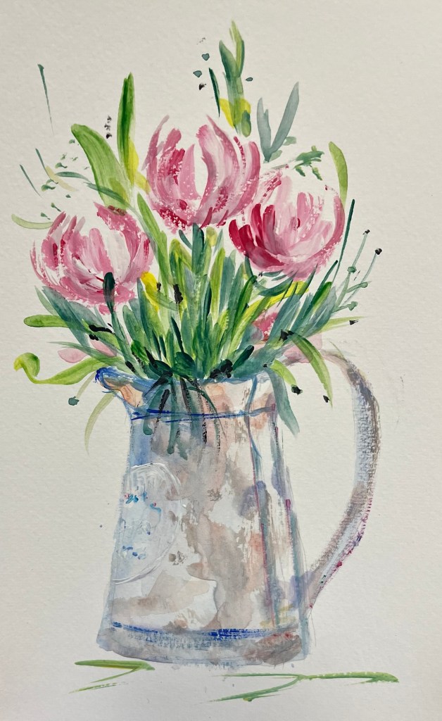 As the sun peeks out from behind the clouds this spring, our Artist’s gallery celebrates a riot of nature’s wonderful colour. Bunches in jars, Bouquets in jugs or a glimpse through the haze of a new morning . Gardens and tabletops refreshingly energised with bursts of positive energy. Who doesn’t love a blooming marvellous flower painting .