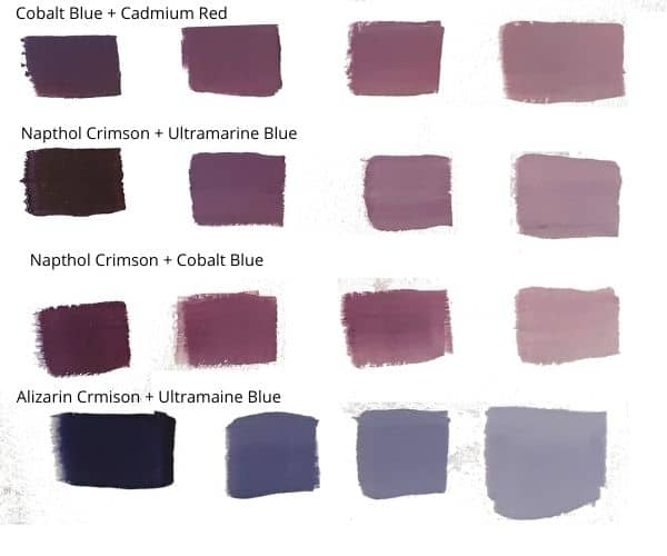 The amount of blue and red that you add to your mixture will determine the exact shade of purple you produce. More red will create a redder purple, and more blue will create a bluer purple. You can mix in other colors to create different shades of purple. To make a true purple, mix equal parts of a cool-toned red and a warm-toned blue. A lighter purple will result from combining white, yellow, or grey with your blue and red combo. Your purple will be darker if you add black to your blue and red mixture.