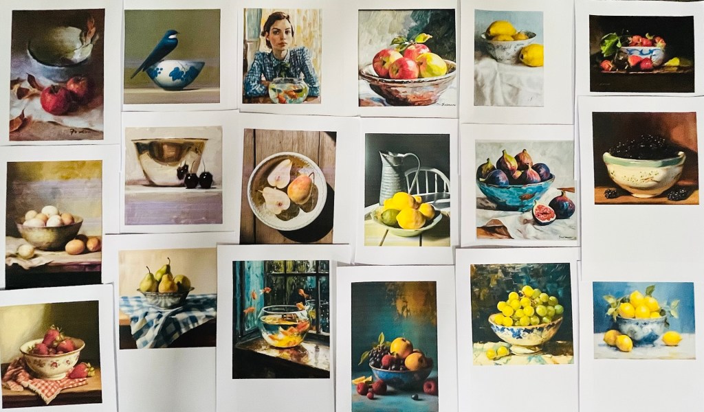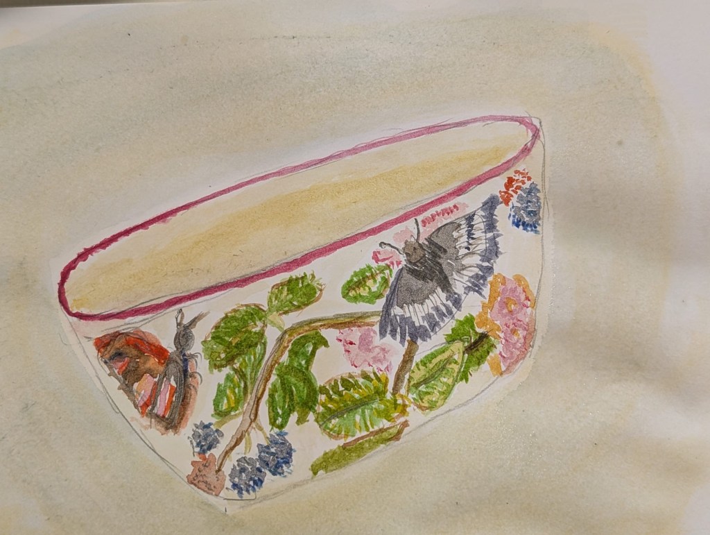 A stunning collection of beautiful bowls exploring form and pattern, colour and composition. It is wonderful to see work in progress too, with colours and marks beginning to form each vessel. Here is a link to a another site showing how to paint a water colour pattern on a bowl.