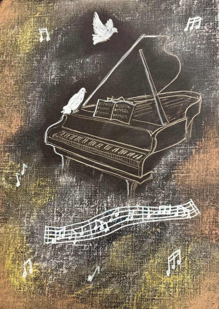 A harmonious atmosphere in the room, and one of friendship between classes and homes hundreds of miles apart. The Art gallery this week depicts such a variety of personal reflections , evocative scenery , moments and echoes too, the gentle balance which forms the sum of all our collective harmonies.