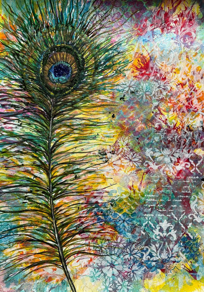 However in India the peacock is considered to be a bird of protection and safe guarding. As peacock is identified with Lakshmi, the goddess of wealth, Indian people keep peacock feathers at home, believing that they will bring wealth and prosperity into the house. It is also believed that peacock feathers keep the house free from flies and other insects.Peacocks in Contemporary Art