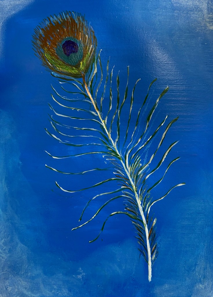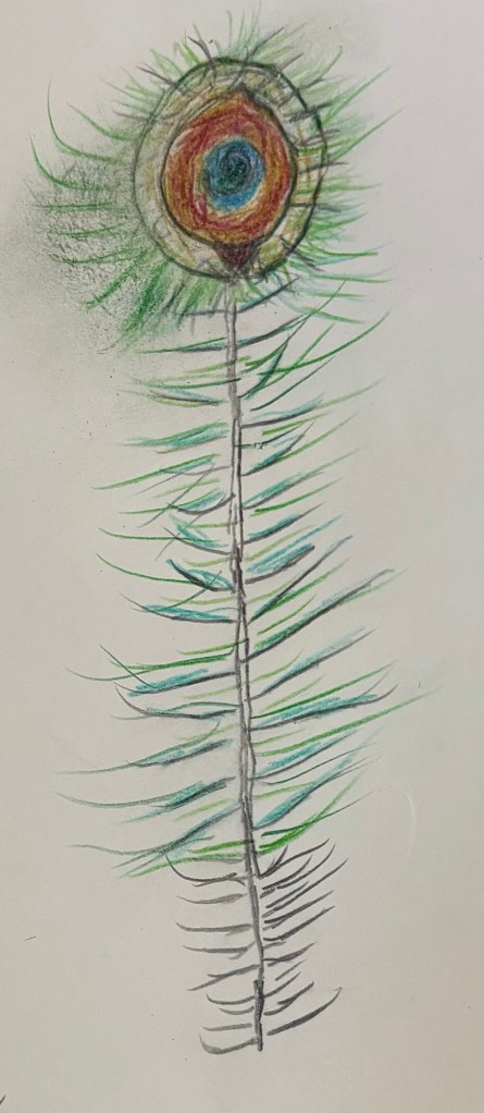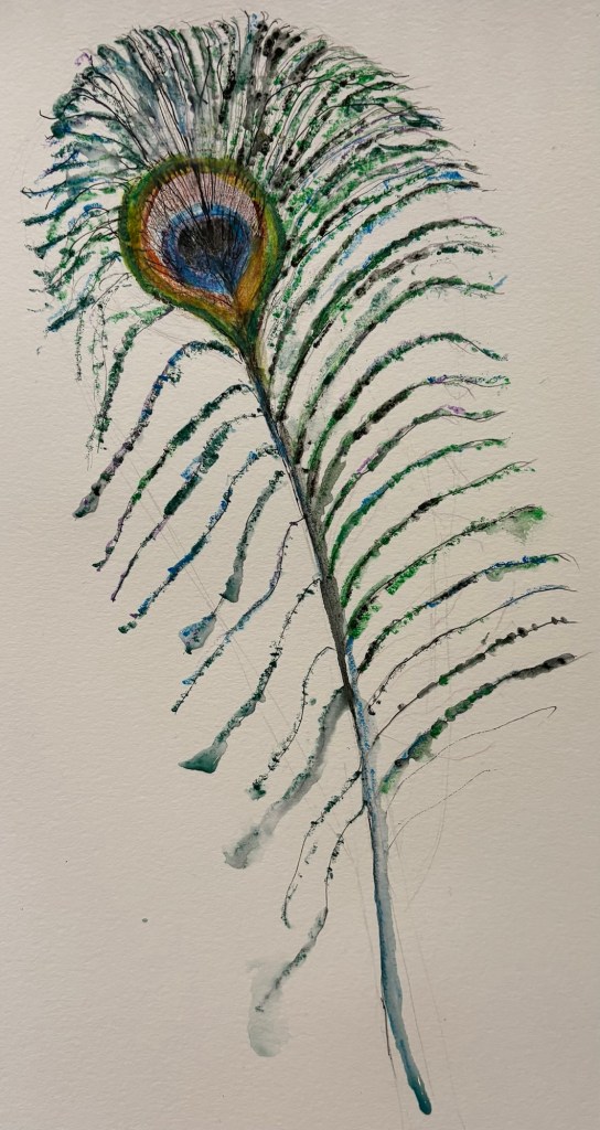 The peacock is native to India and further east, but the bird has a long history in the Middle East, perhaps originally brought by early Indian traders to ancient Babylon. The male peacock’s plumage of shimmering blues and greens fascinate even as its raucous cries seem so at variance with such beauty.Some cultures believe that keeping peacock feathers indoors is bad luck; for instance, the daughters of the house may never get married. But it’s okay to have them outside.