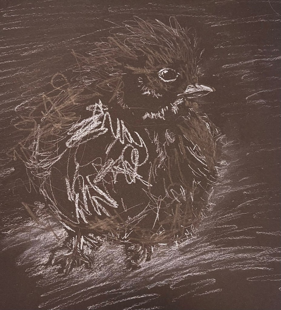 *Predominantly charcoal but with a few spot colours with pastel pencil.