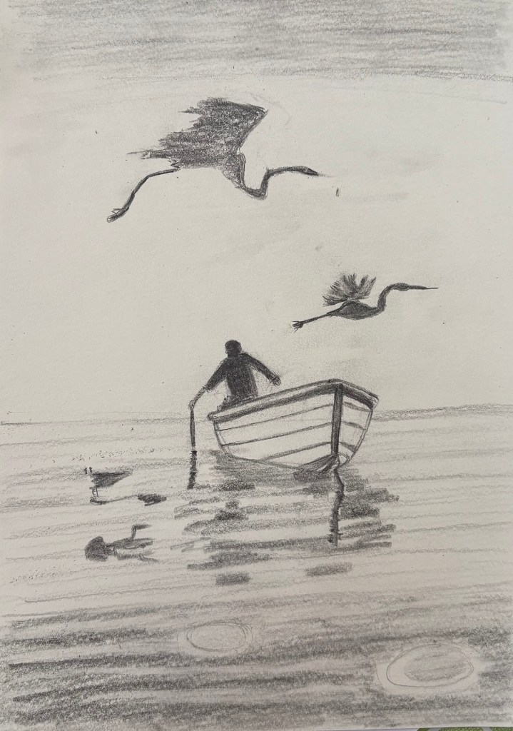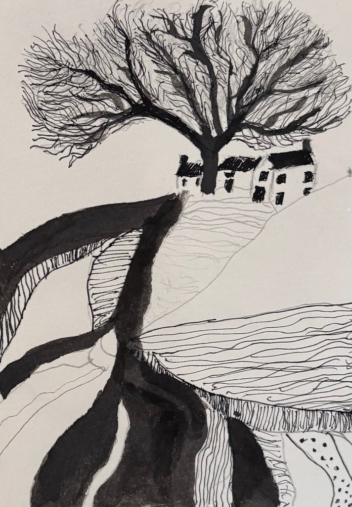 Stripping back the drawing and painting process to a simple monochromatic or black and white palette is a useful, interesting and worthwhile exercise; and often as we can see this week; produces surprising, beautiful results. Often oil painters will produce an under painting of grey tones to find the darks and lights before adding any colour.