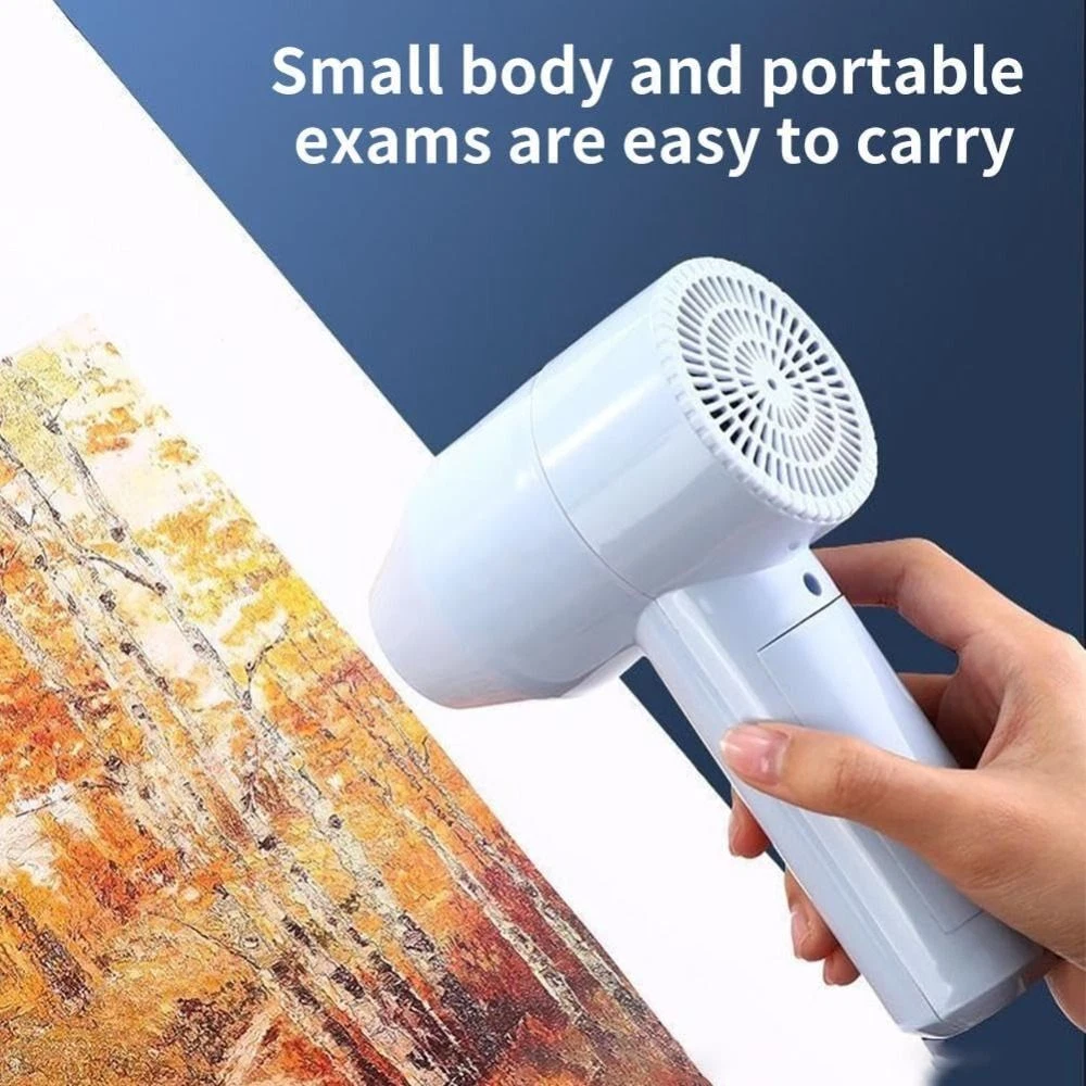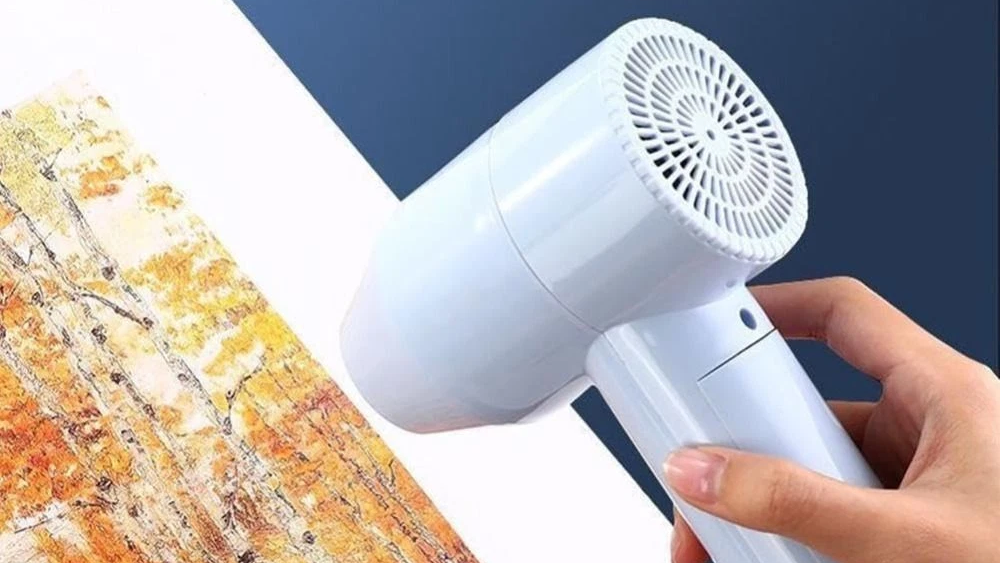 An alternative is a heat drier, specifically made for drying artwork. You can use a hairdryer. (But use caution as it is obviously a heat source and can burn and scorch materials and paper- use a cool setting )