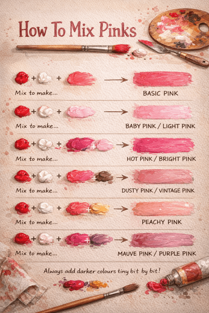 - Layering Colors: Blending soft pinks, white, and yellow with dark centers to add depth.