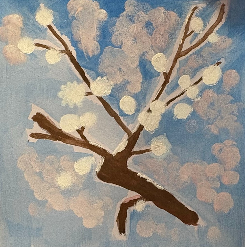 - Composition: Often focusing on branches against a clear sky or with, for instance, a distant Mt. Fuji, as seen in traditional Japanese prints.