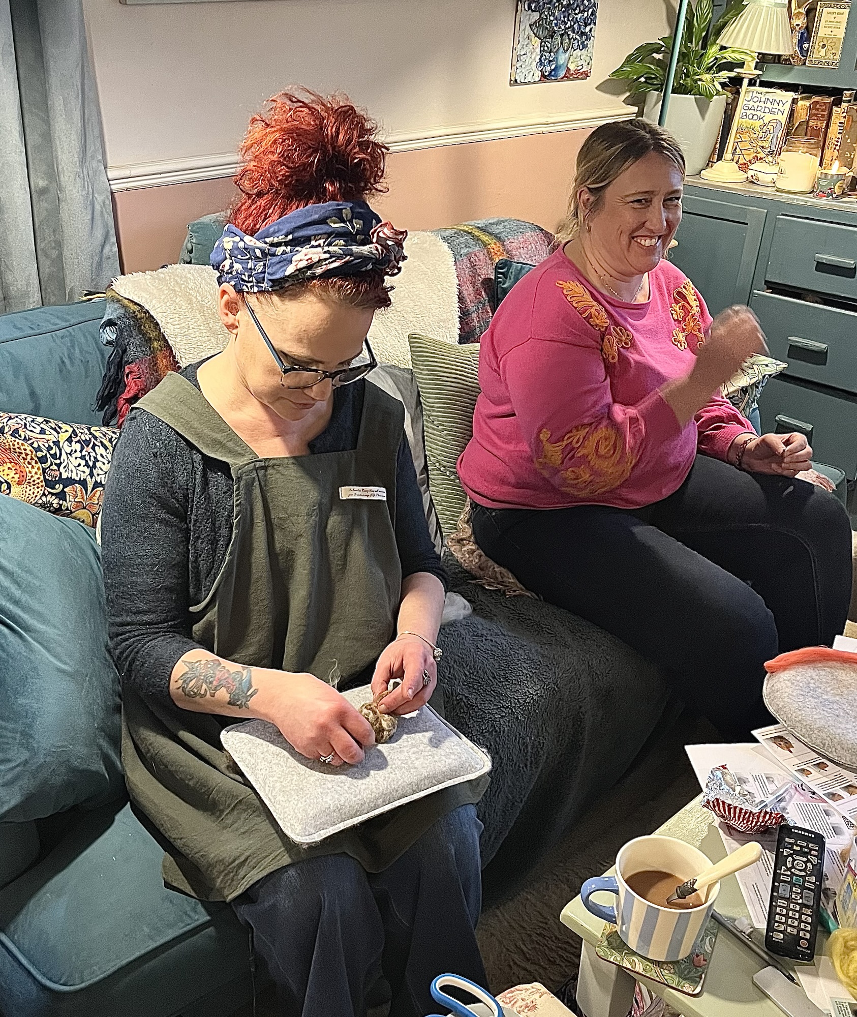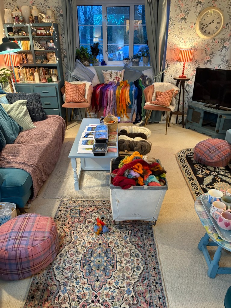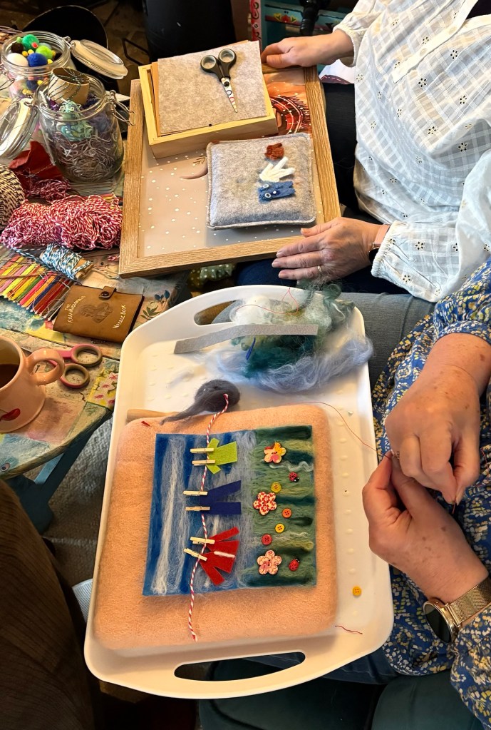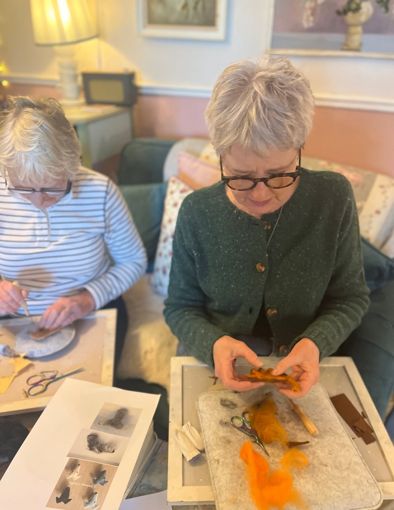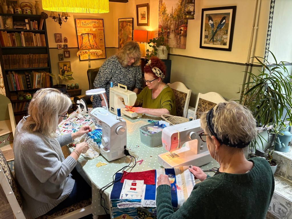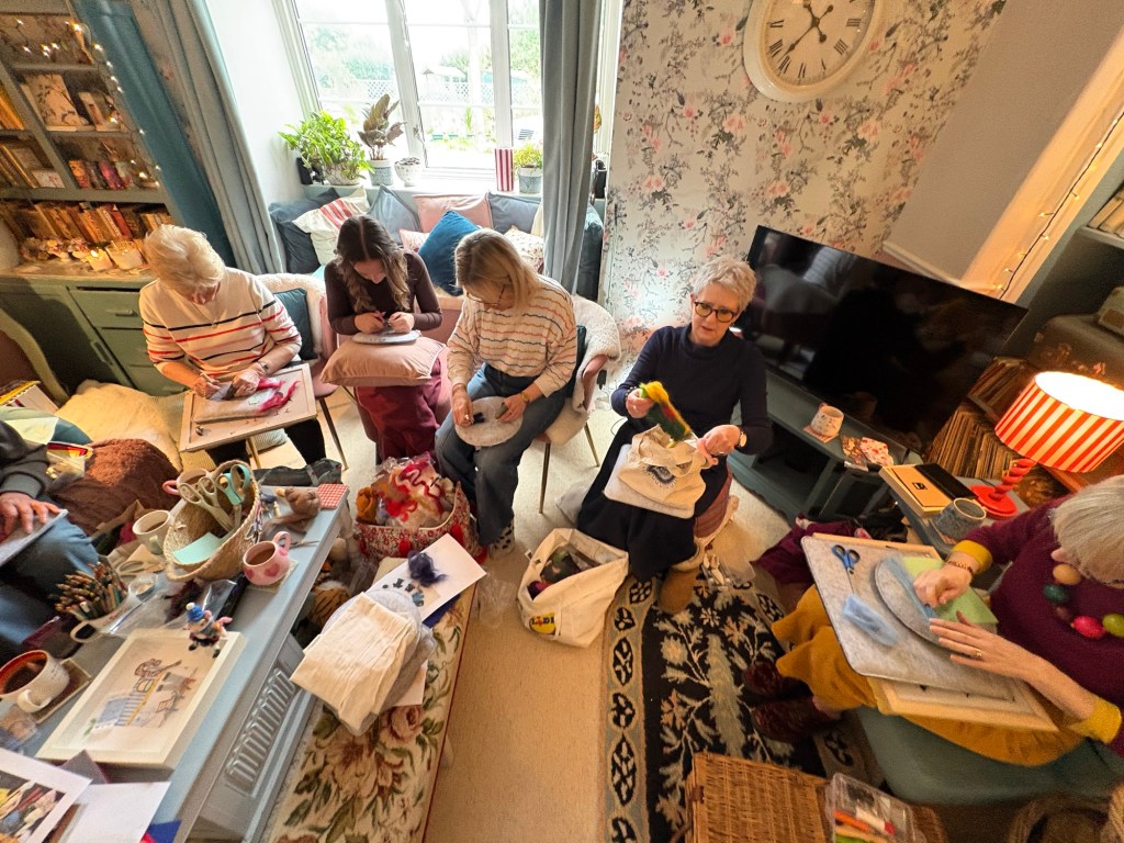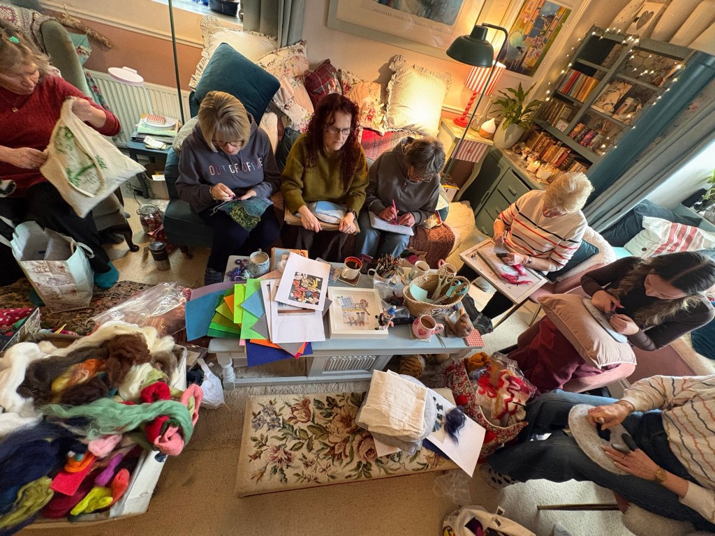 The house becomes a classroom, a chance to absorb ideas from each other, catch up on ideas , drink coffee, stitch, felt, make and just chill .