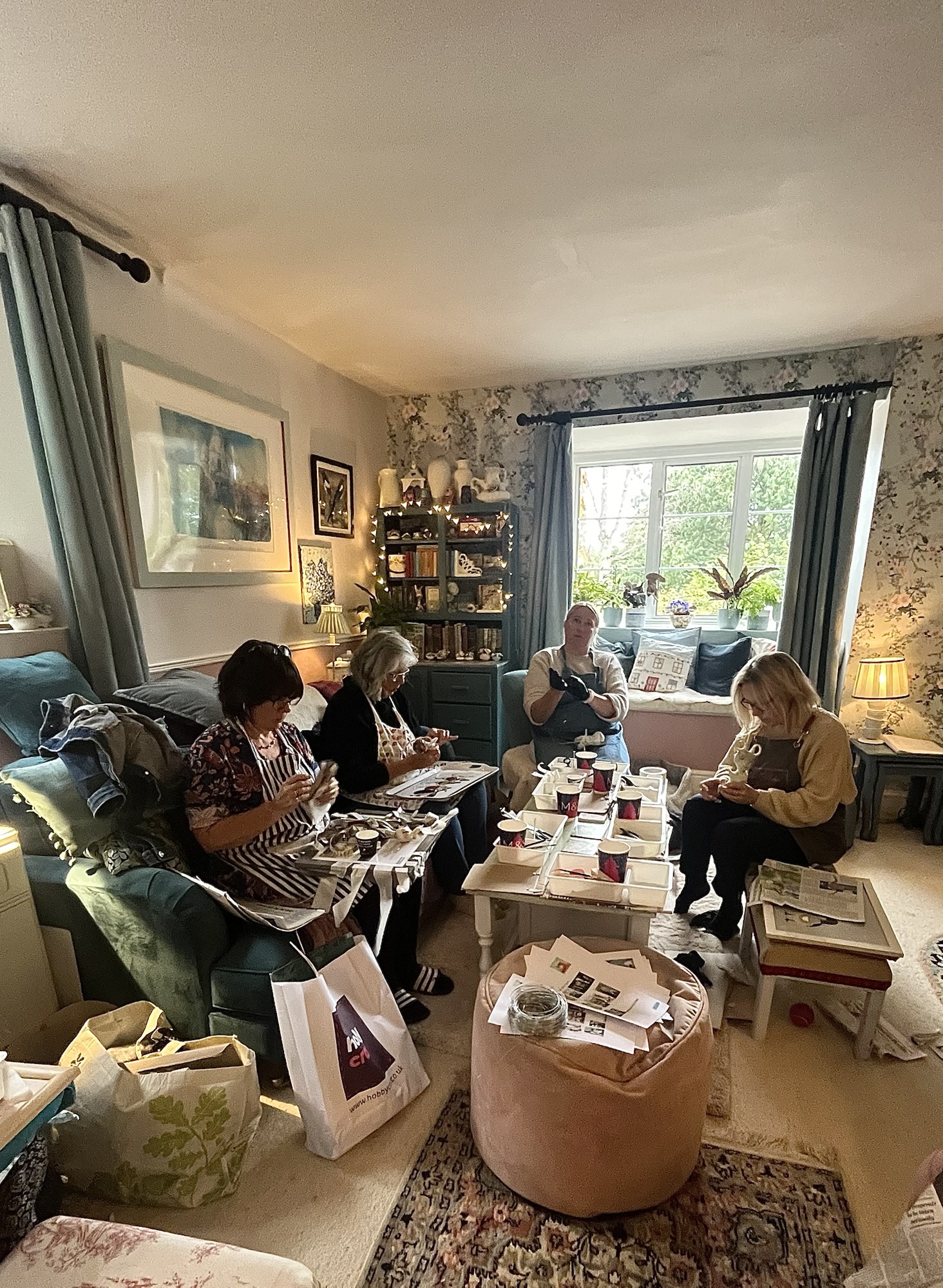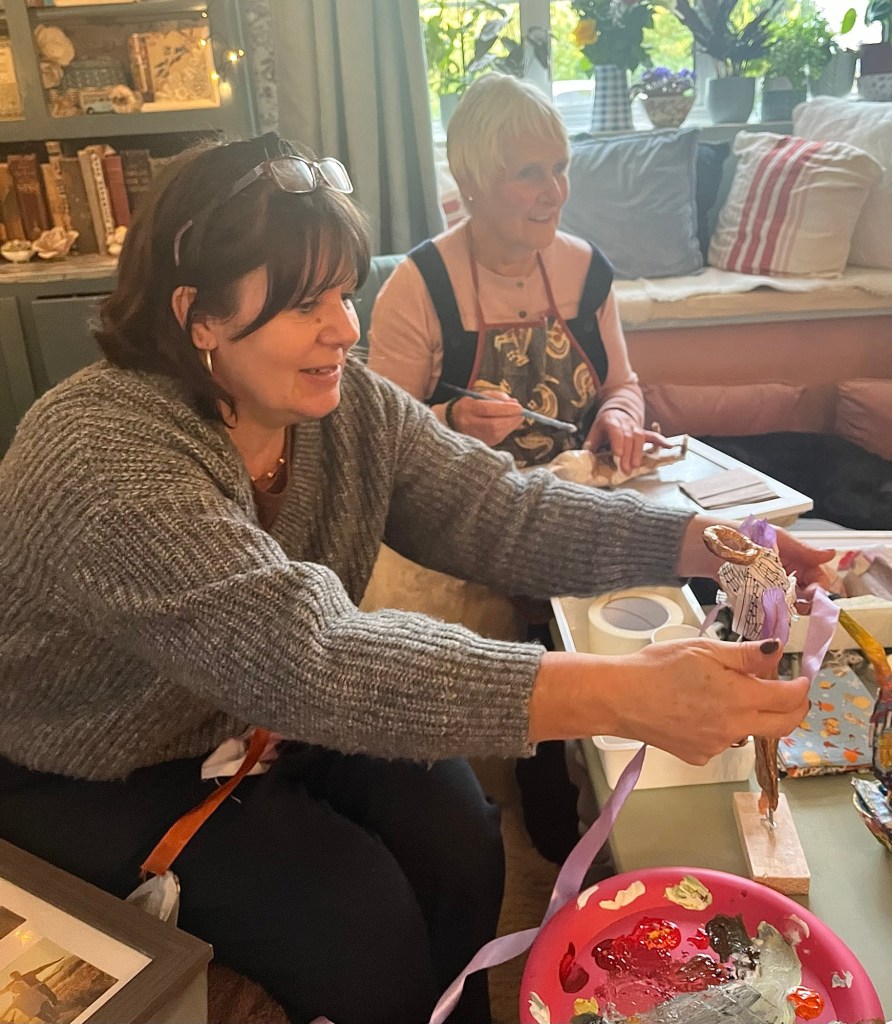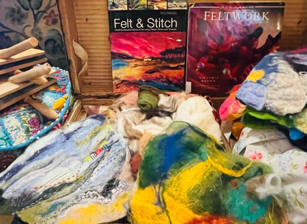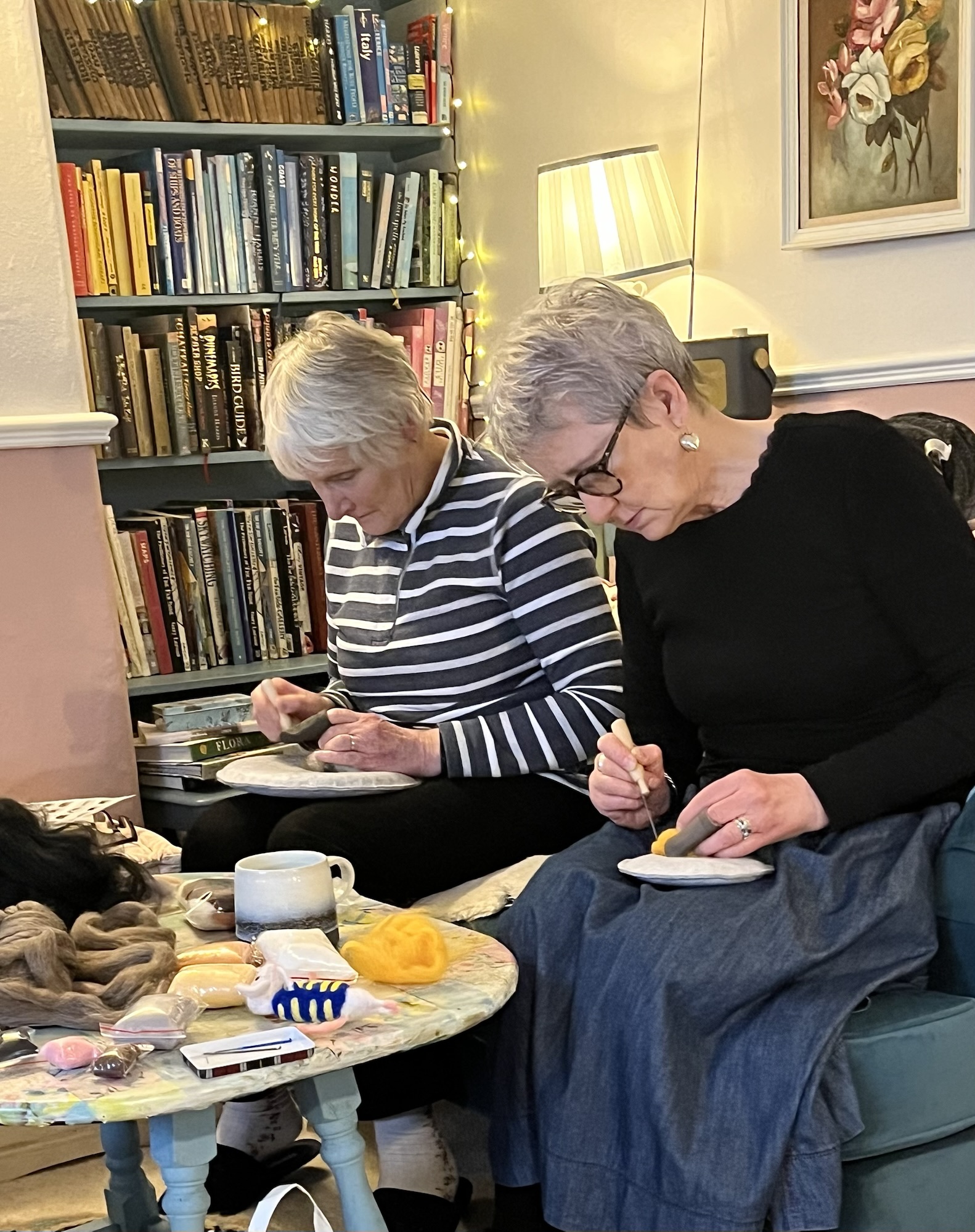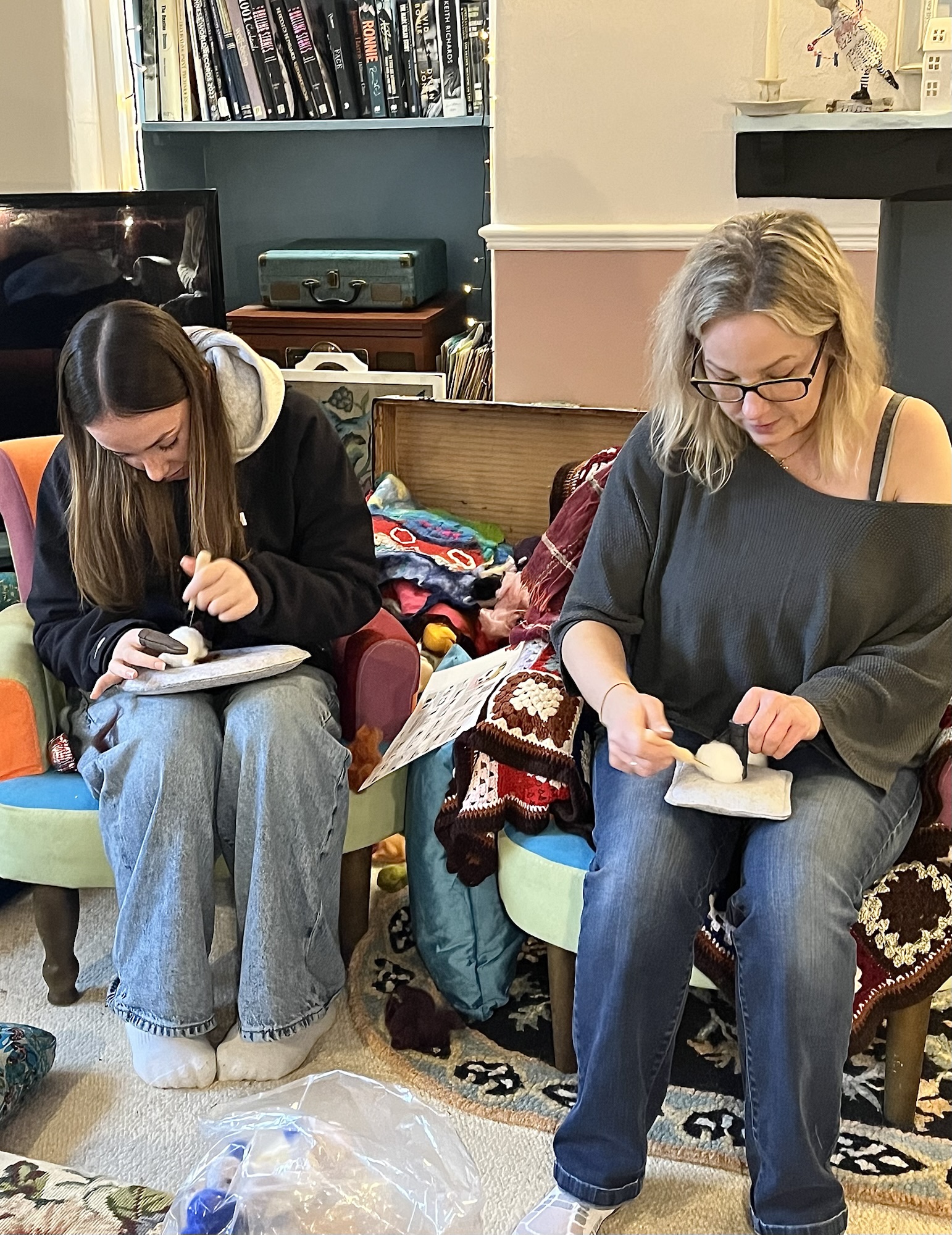The house becomes a classroom, a chance to absorb ideas from each other, catch up on ideas , drink coffee, stitch, felt, make and just chill .