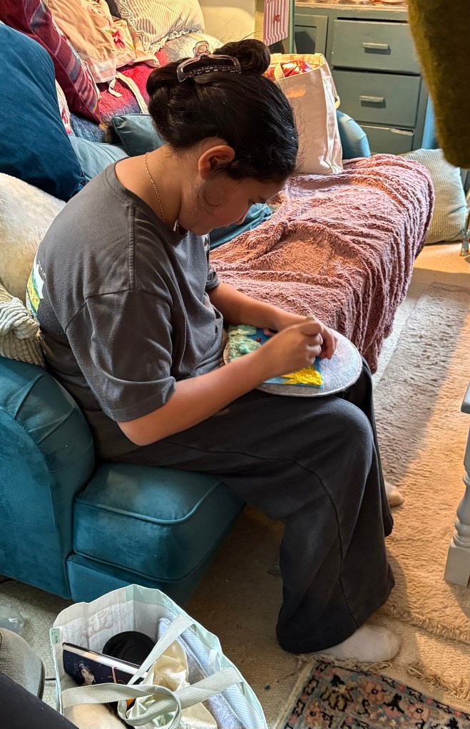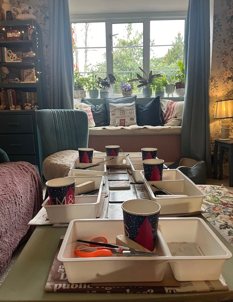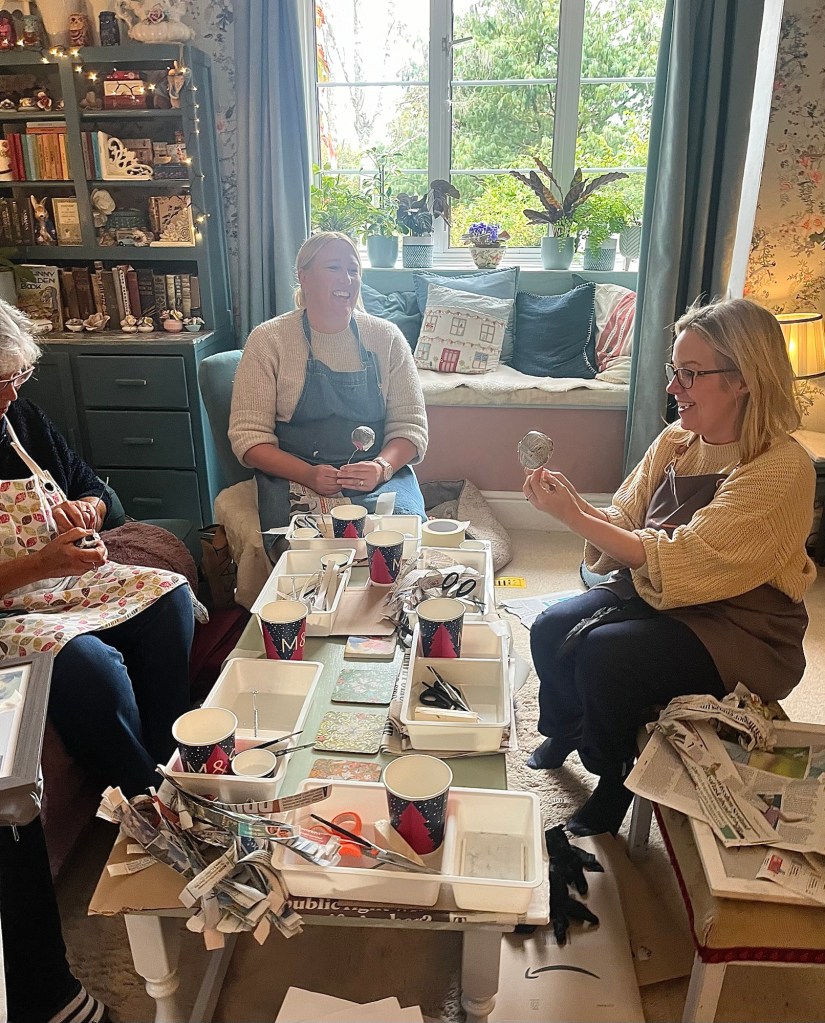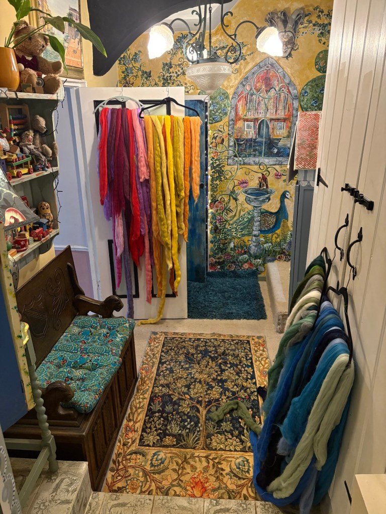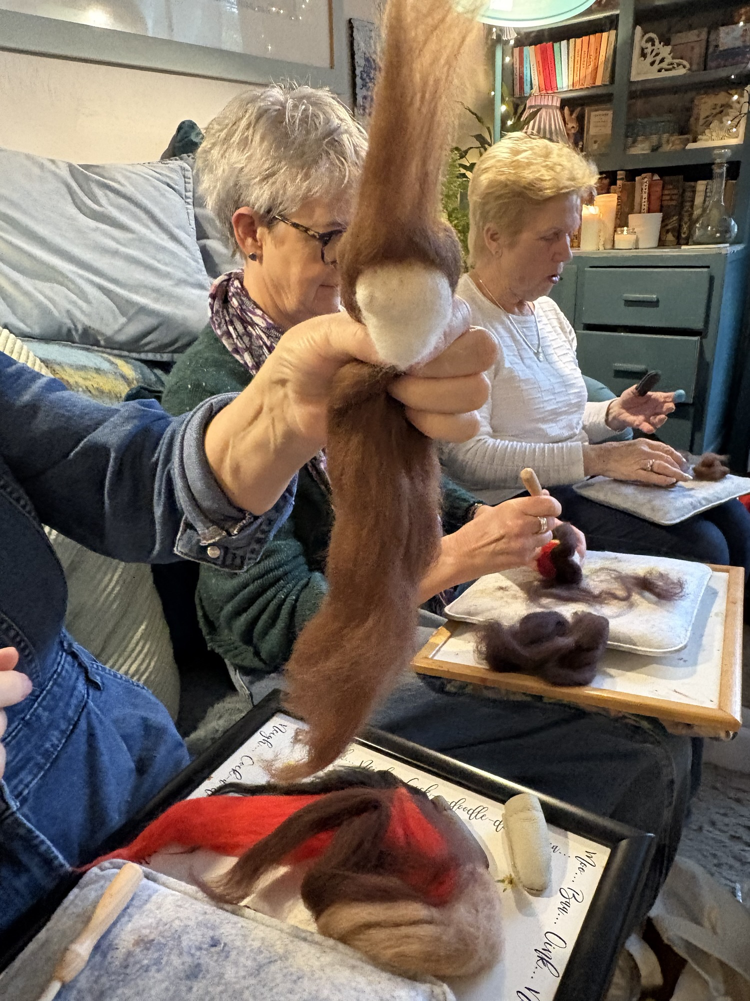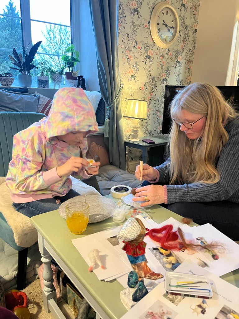 The house becomes a classroom, a chance to absorb ideas from each other, catch up on ideas , drink coffee, stitch, felt, make and just chill .